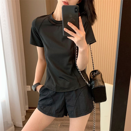 レディース速乾スポーツウェアセット – 半袖Tシャツ&ショートパンツ