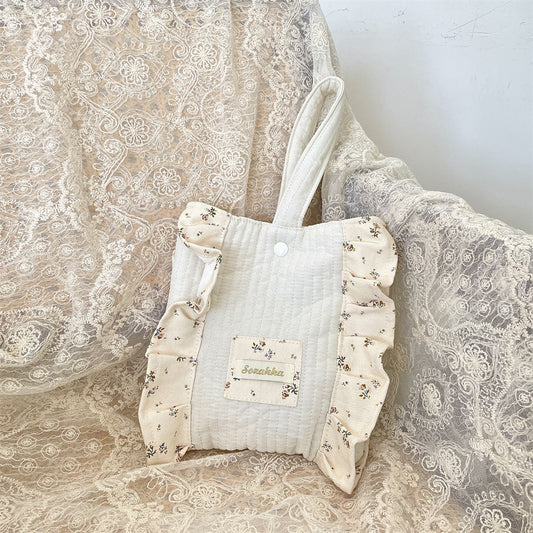 韓国風レース&リボン ミニトートバッグ デイリーコットンレーストートバッグ