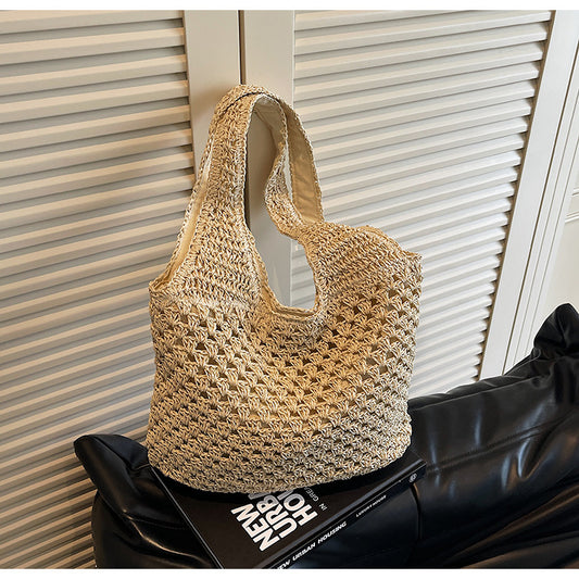 手作り感たっぷりの中空編みトートバッグ レディース 夏向けショルダー