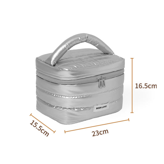 光沢PUキルティングハンドヘルドコスメバッグ 大容量PUハンドバッグ風化粧ポーチ