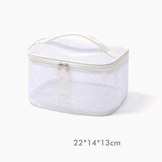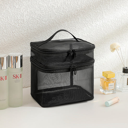 ナイロンメッシュ×二重層大容量トラベルコスメバッグ 洗えるナイロンメイク収納バッグ