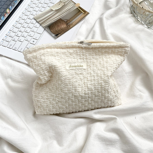 ソリッドカラーコーデュロイ巾着ポーチ|大容量・韓国風レディース化粧品収納バッグ