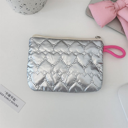 選べる シルバーキルティングハートポーチ 可愛い化粧品収納バッグ