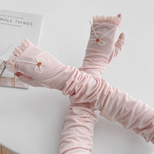Lace frill UV protection ice silk arm sleeves for summer cooling mesh cover for women