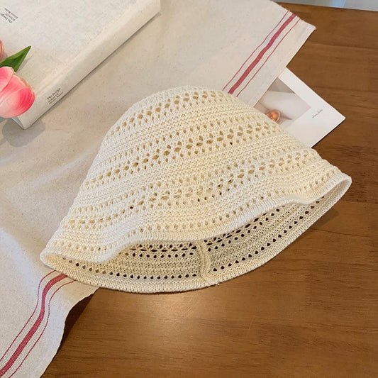 Hollow knit bucket hat for women, UV protection, new for summer 2025