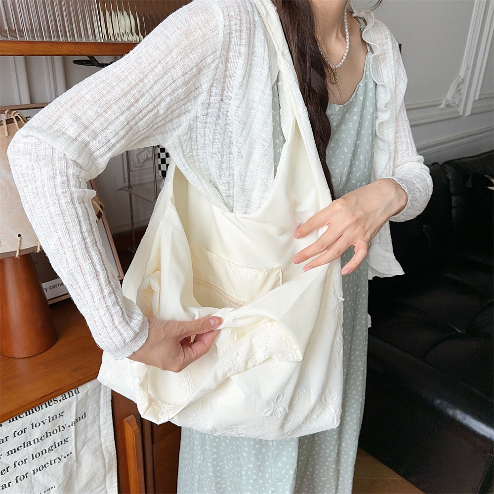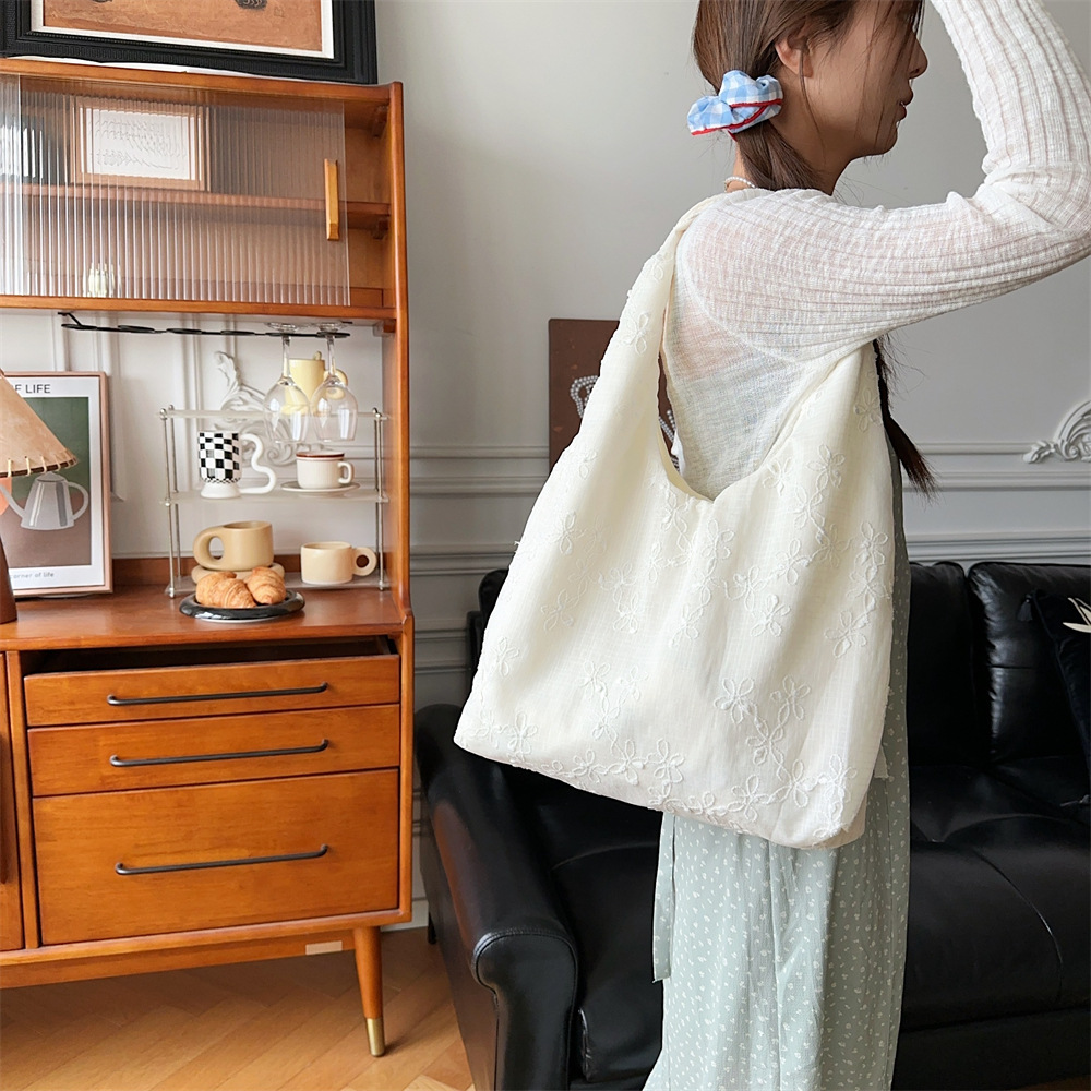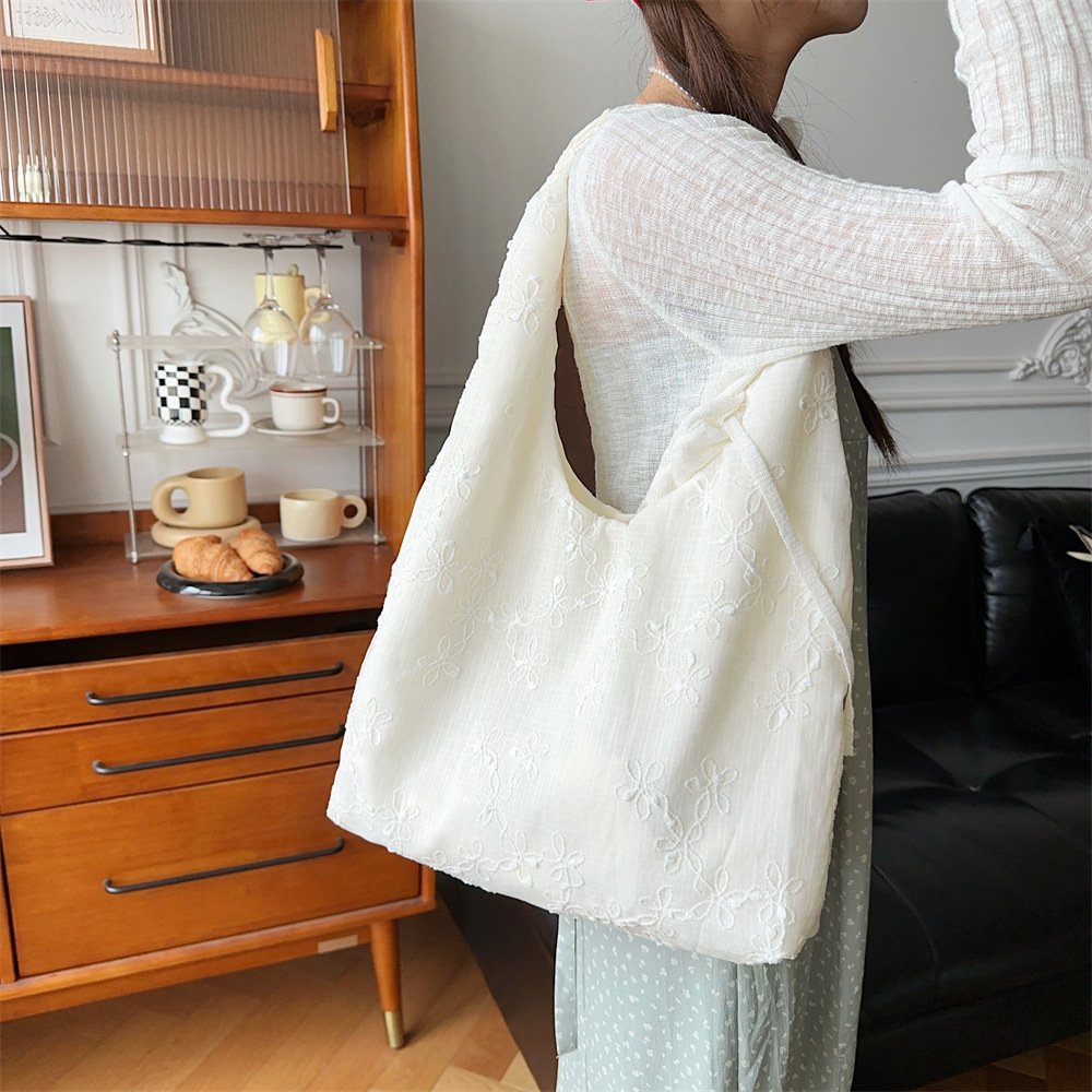 軽やかなシフォン風素材に小花刺繍をちりばめた、春夏コーデにぴったりのワンショルダーバッグ。