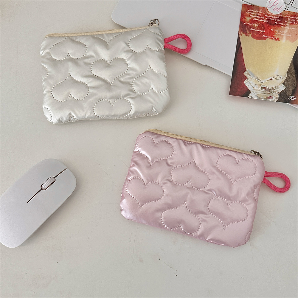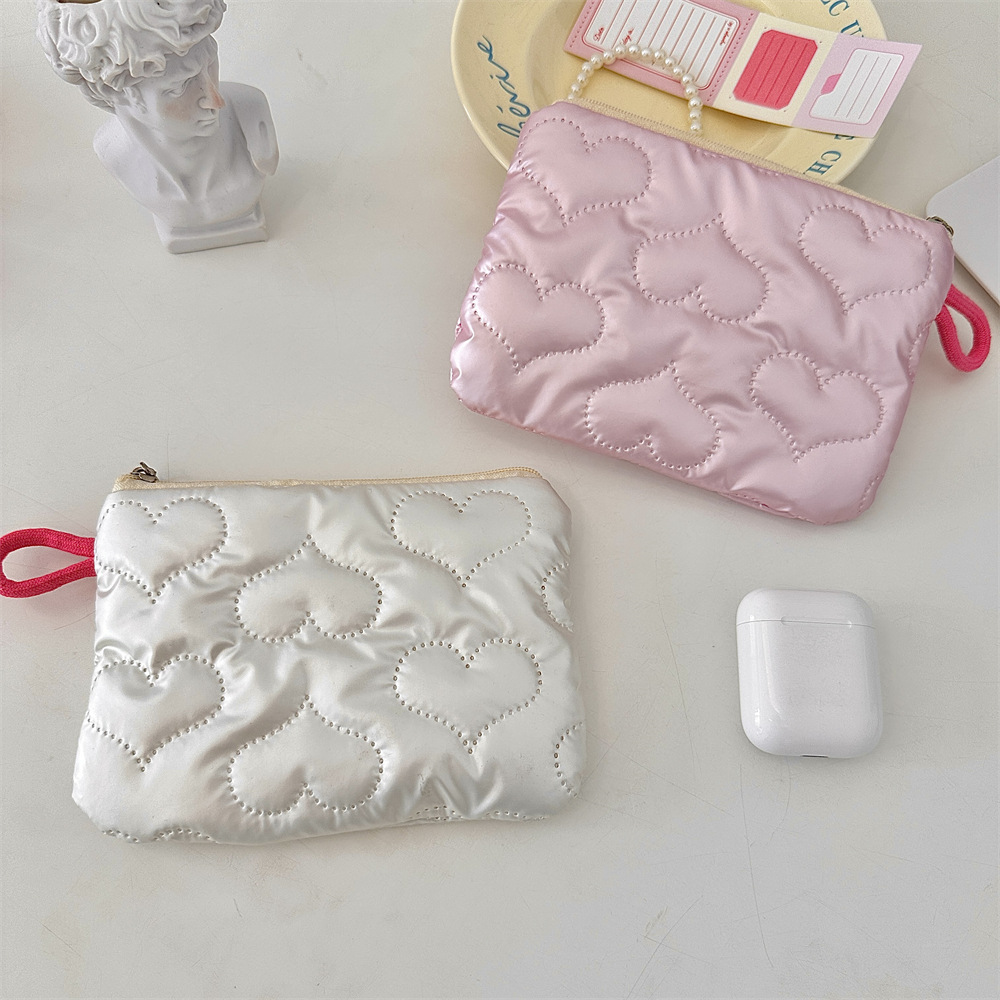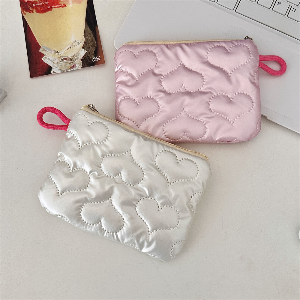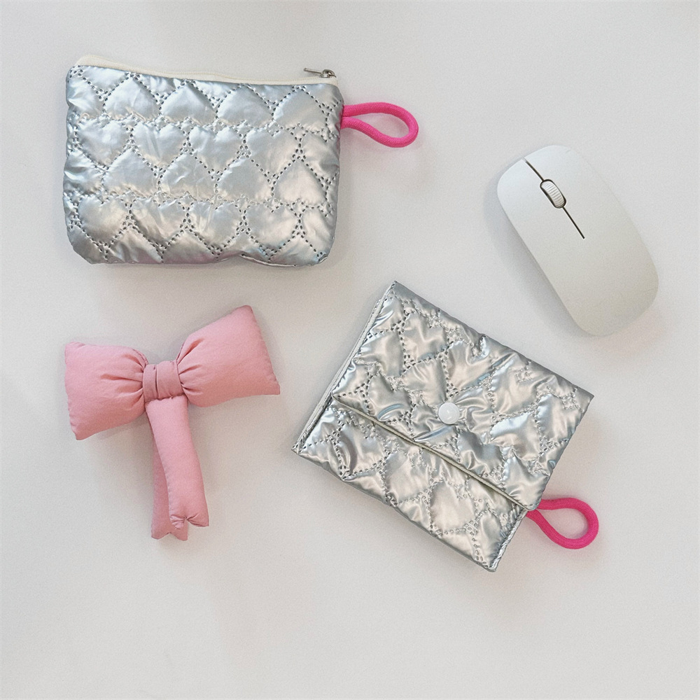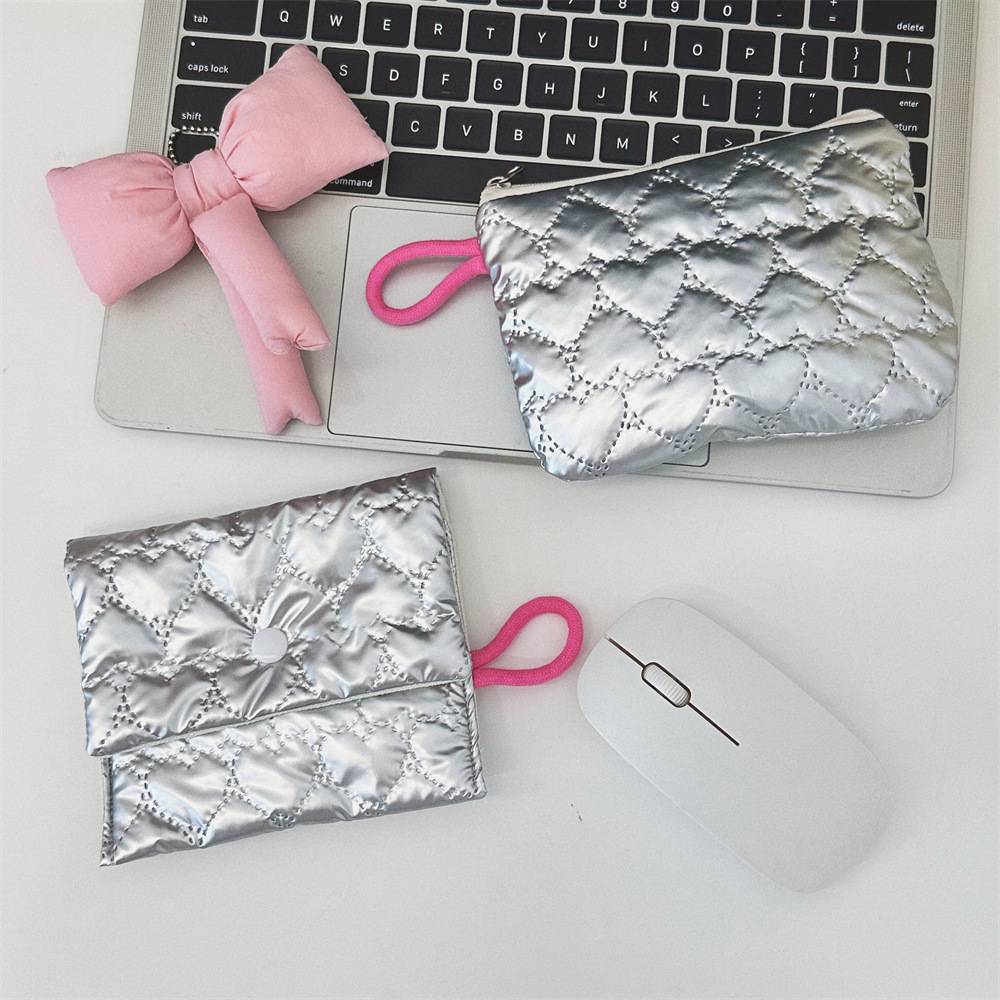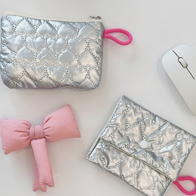 選べる シルバーキルティングハートポーチ 可愛い化粧品収納バッグ