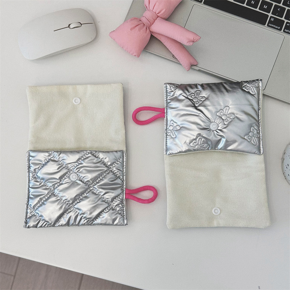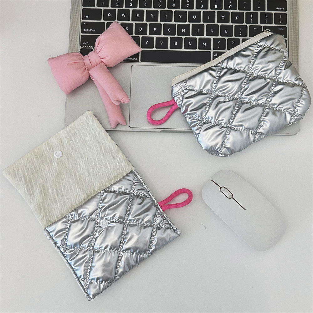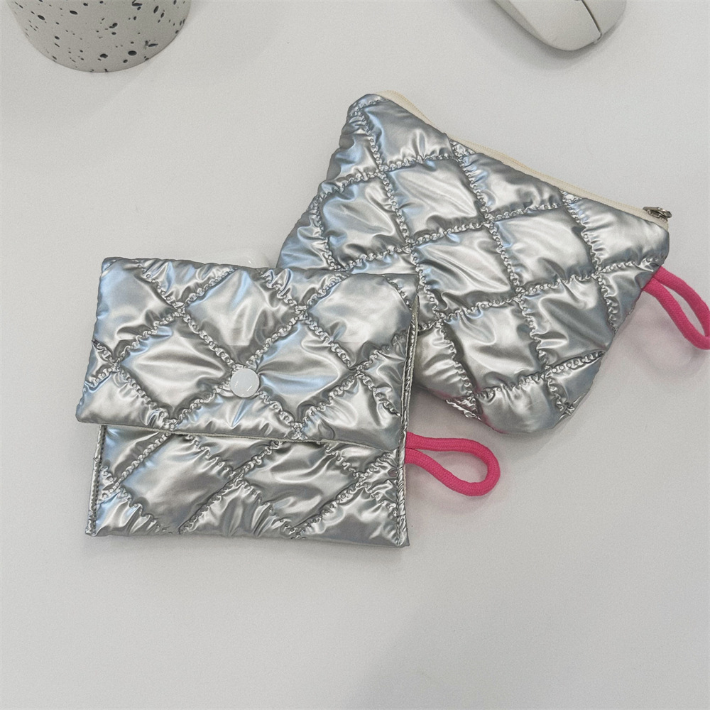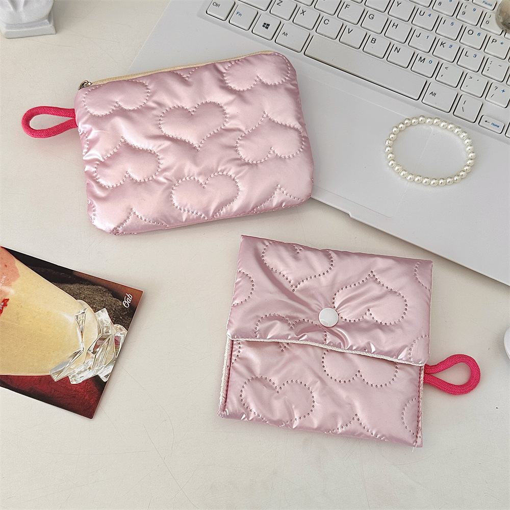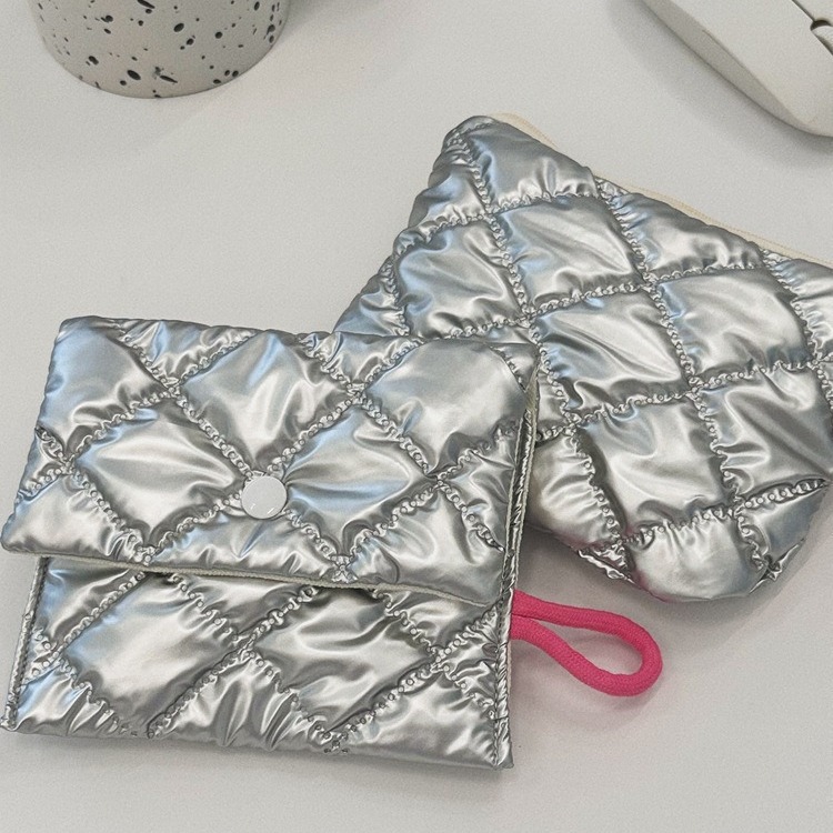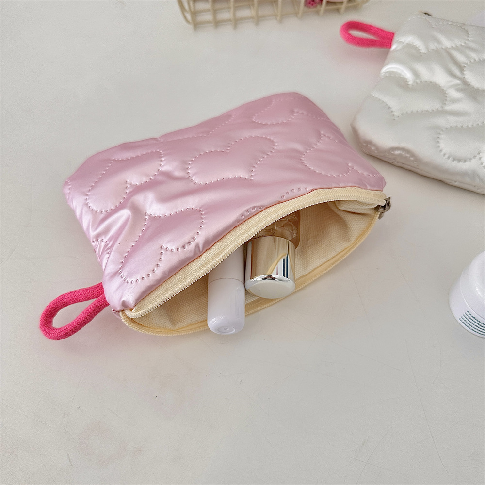 選べる シルバーキルティングハートポーチ 可愛い化粧品収納バッグ