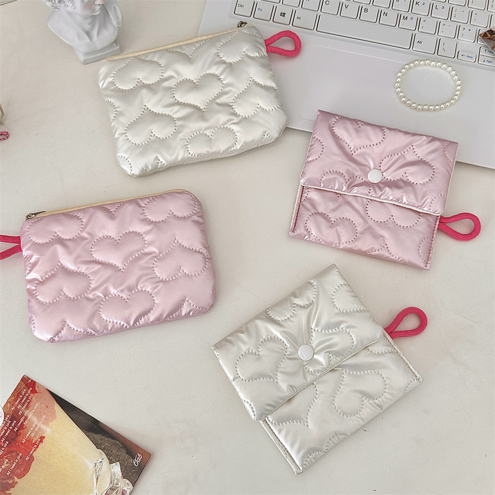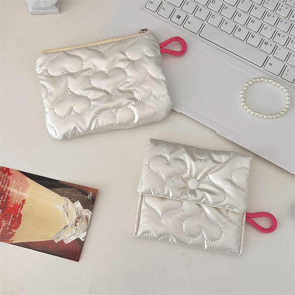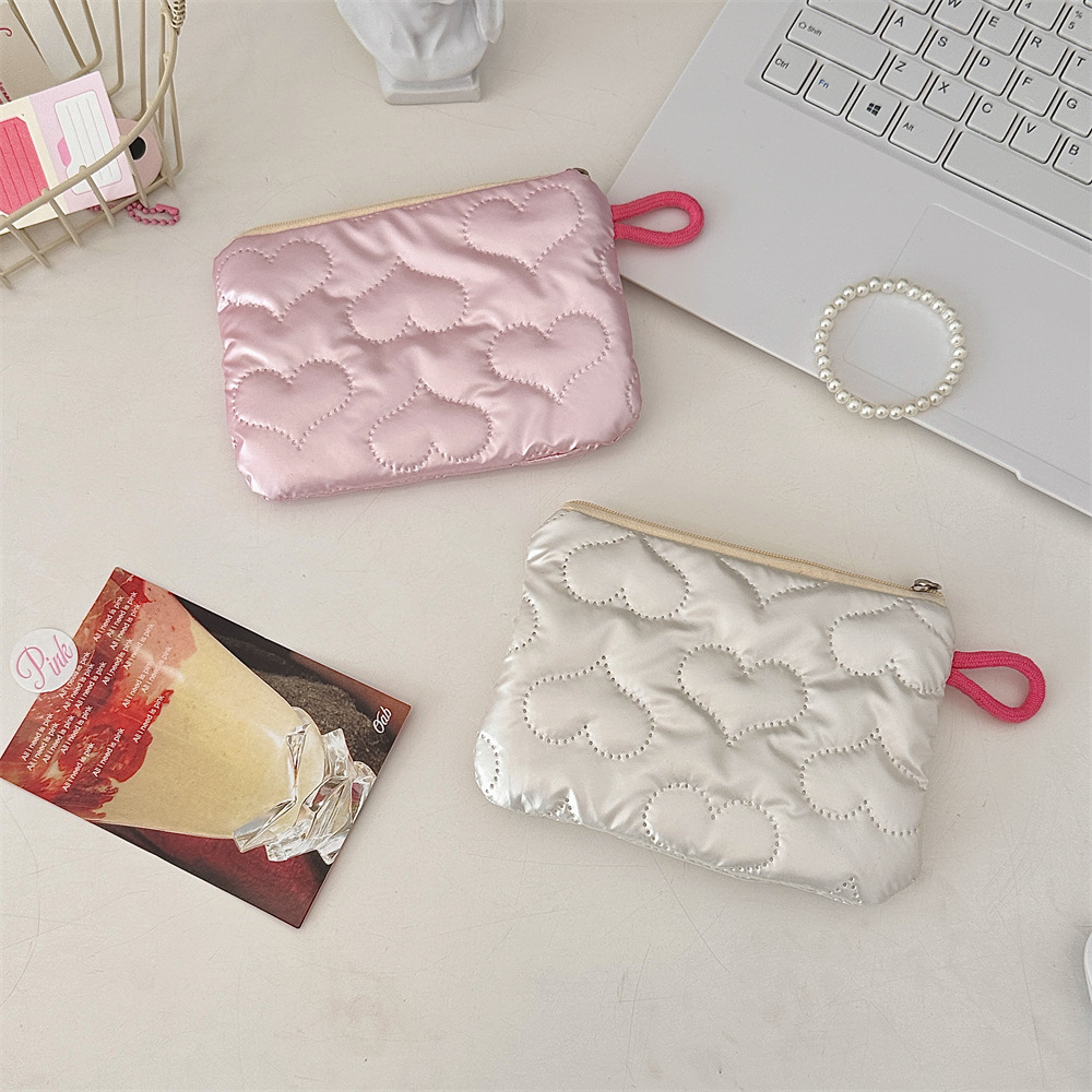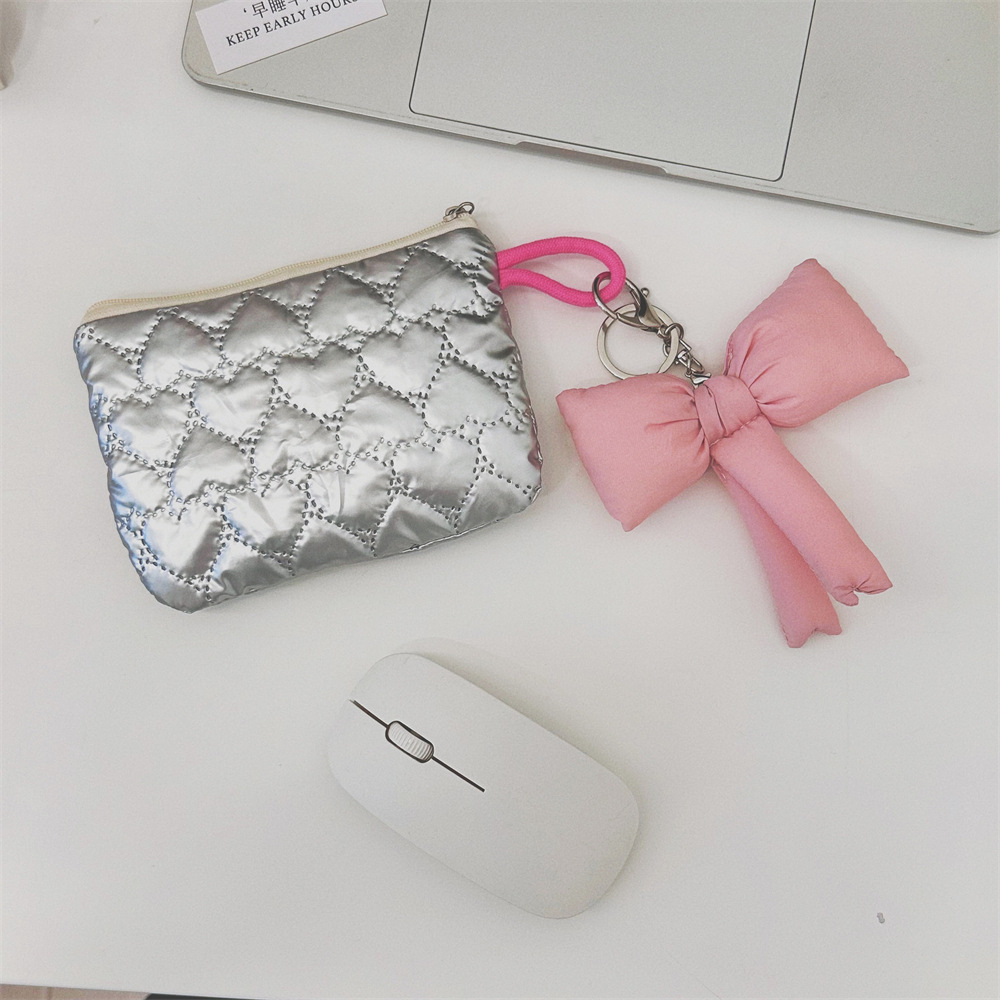 kawai-profile選べる シルバーキルティングハートポーチ 可愛い化粧品収納バッグ