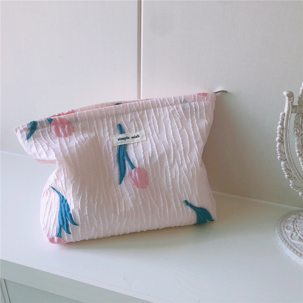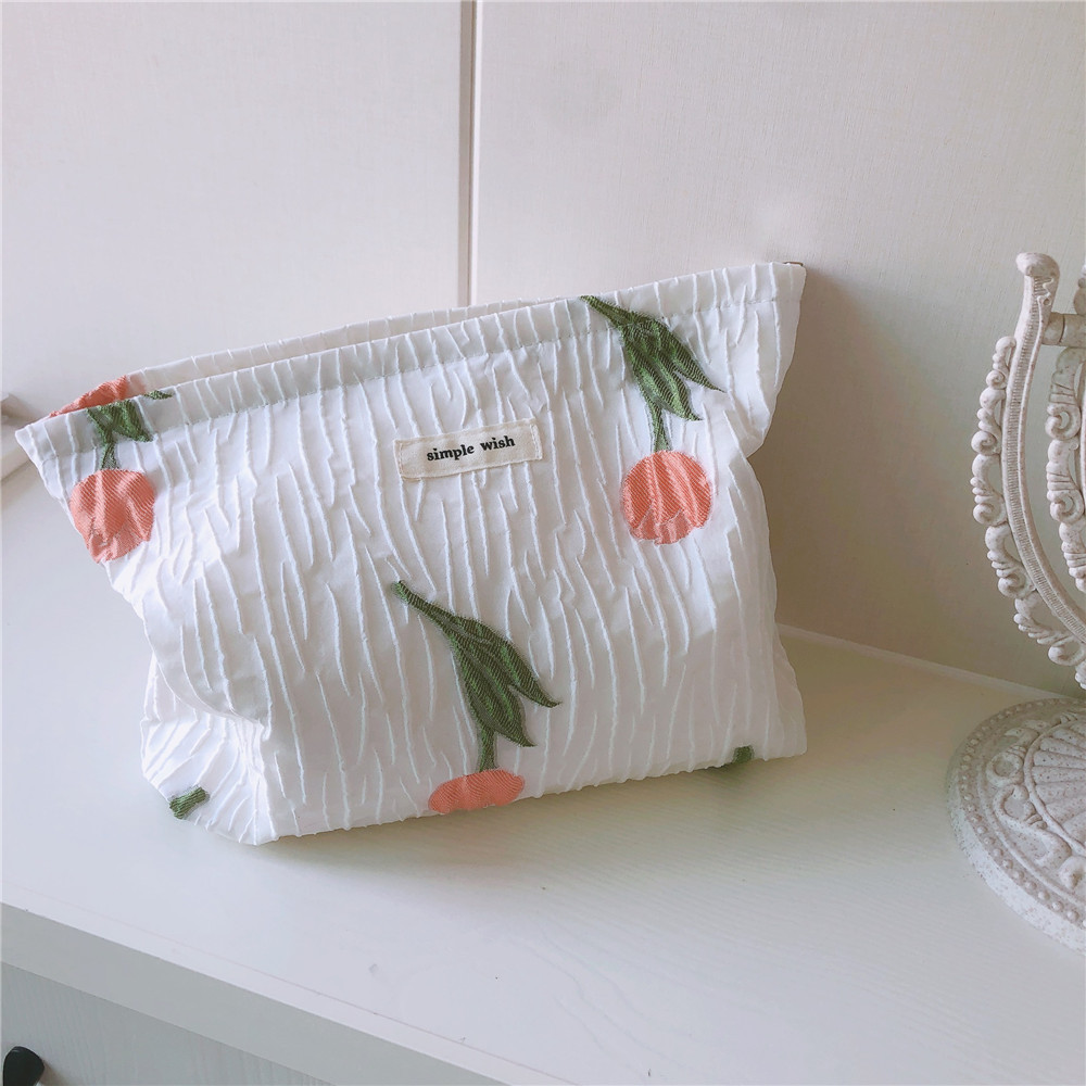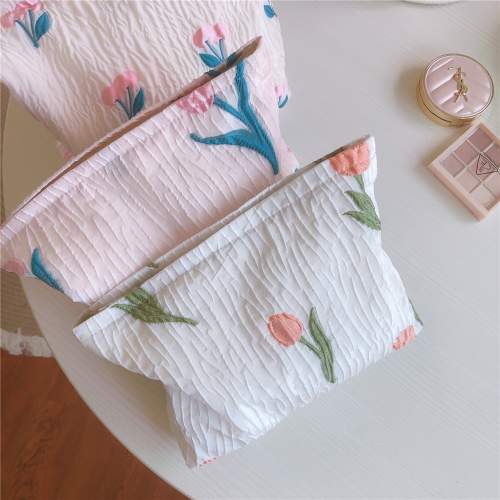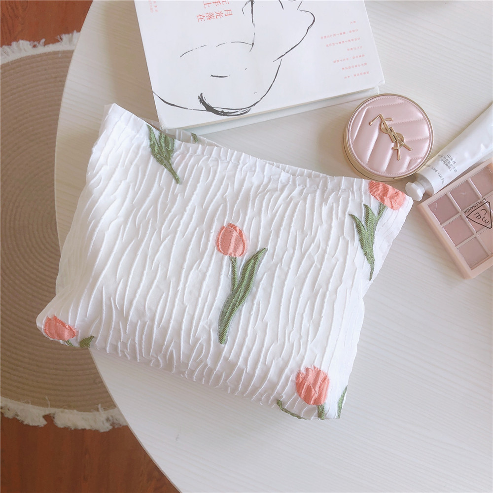 チューリップ刺繍 コットンクラッチバッグ フレンチロマンチック刺繍パウチ