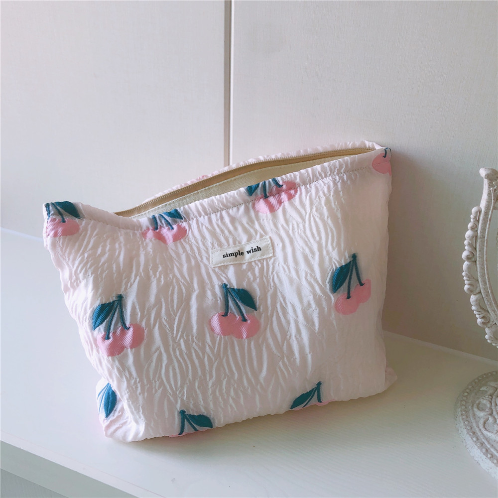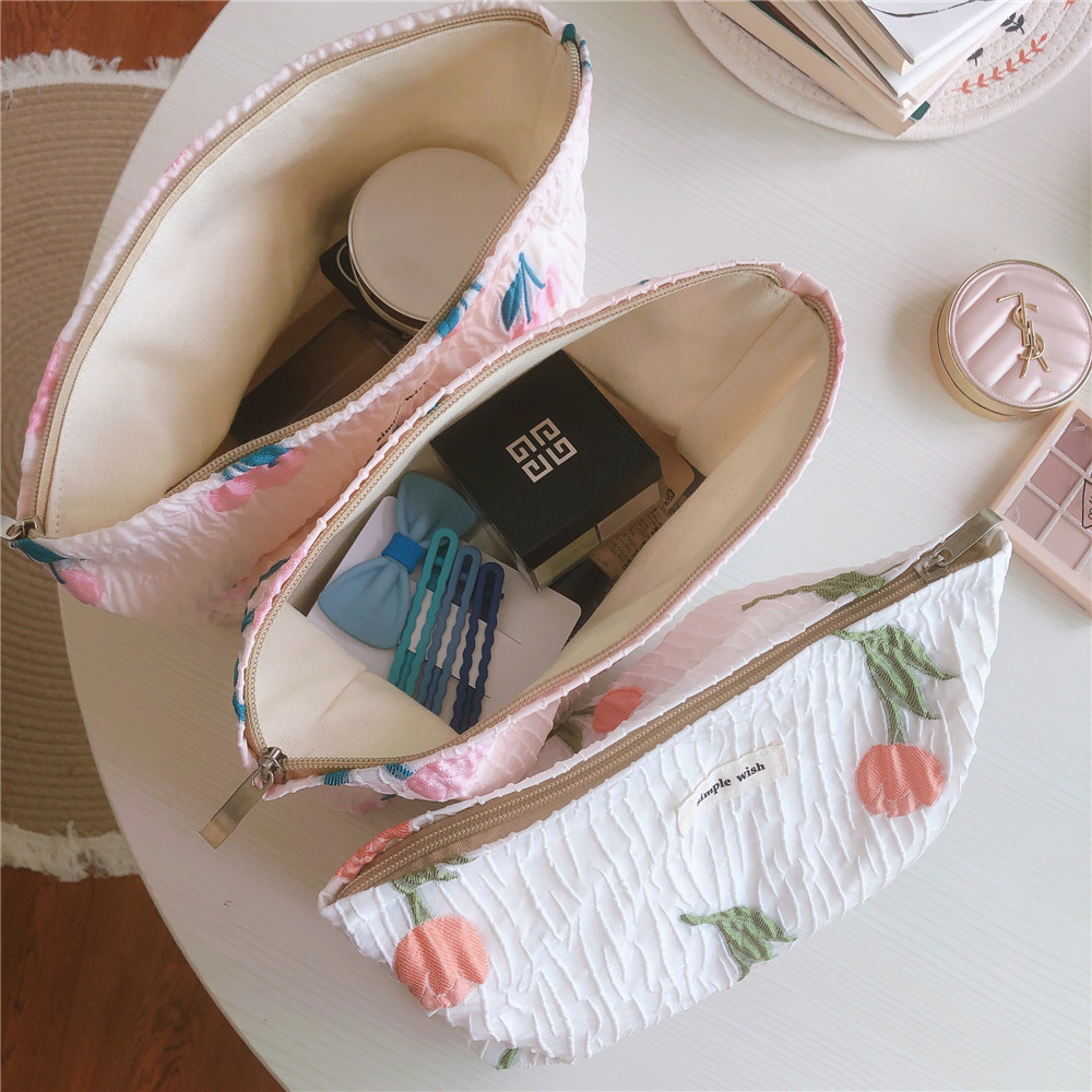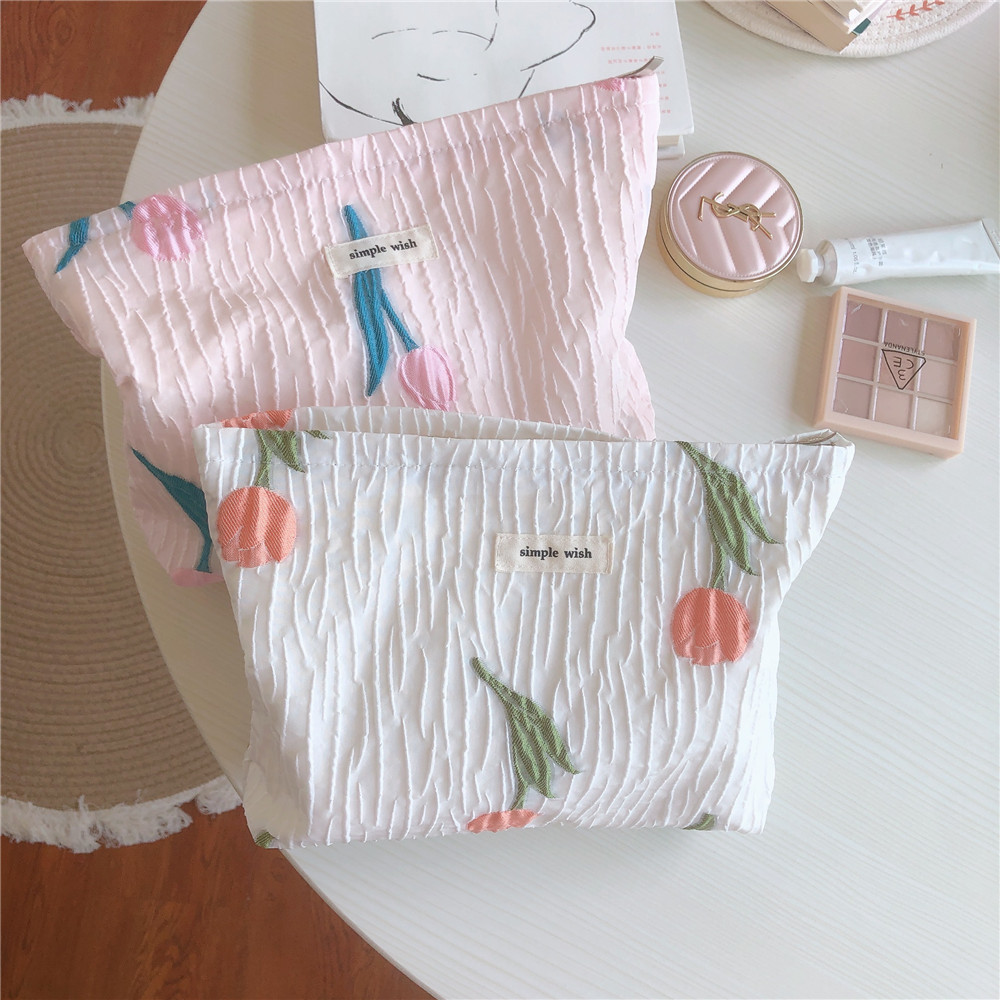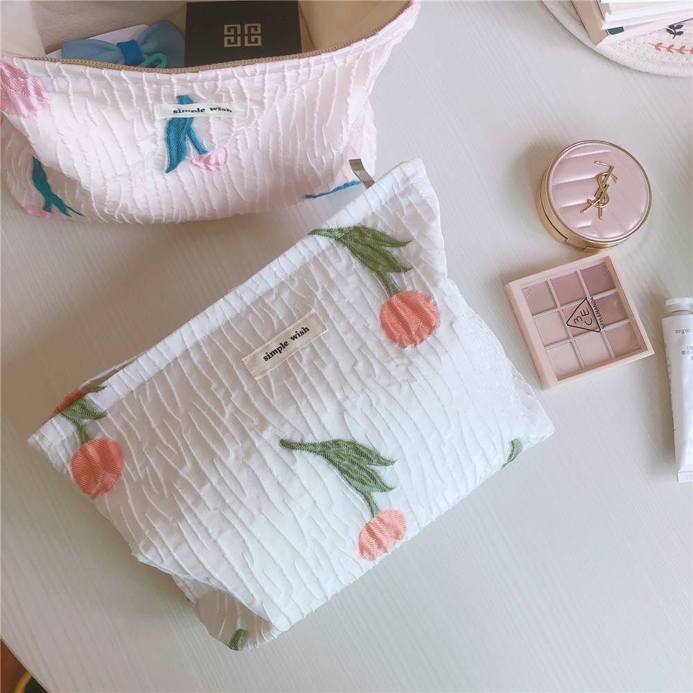 チューリップ刺繍 コットンクラッチバッグ フレンチロマンチック刺繍パウチ