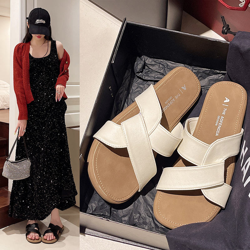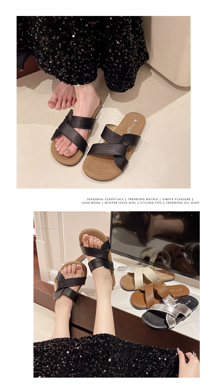 フレンチスタイル フラットスリッパ|レディースソフトソールサンダル 2025年夏新作