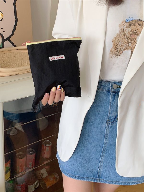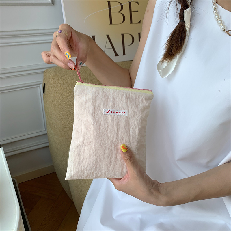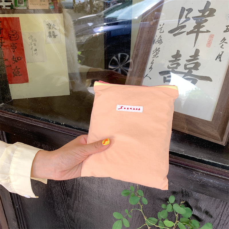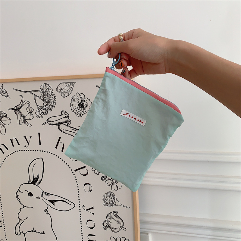 マカロンカラーのコンパクトポーチ。