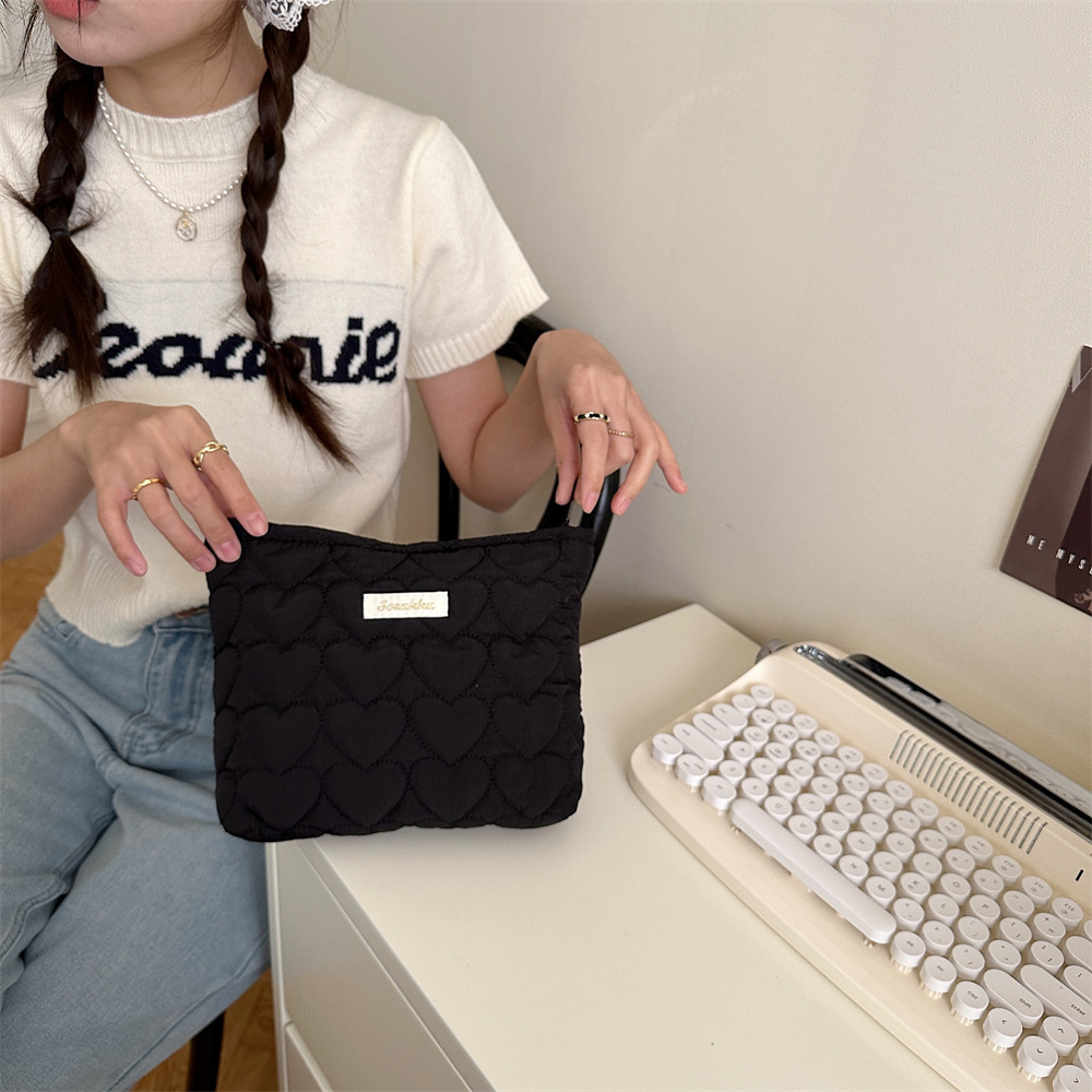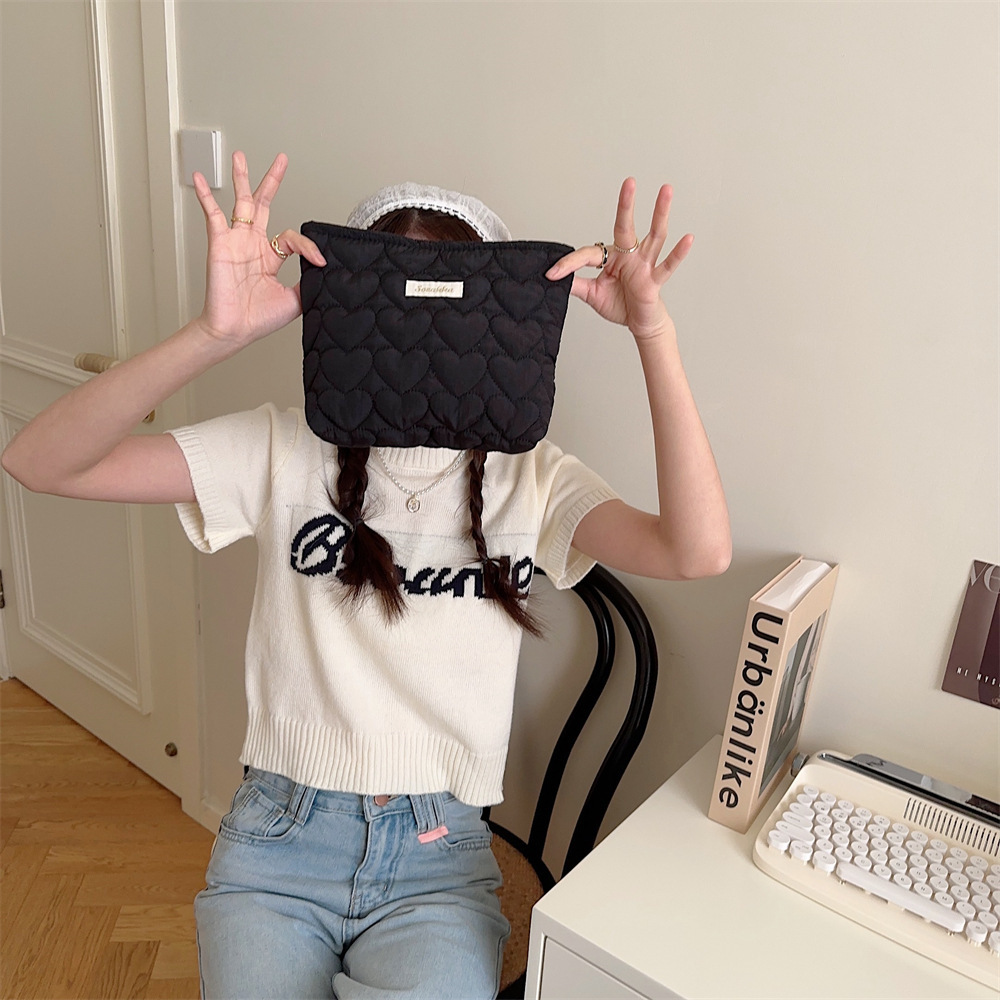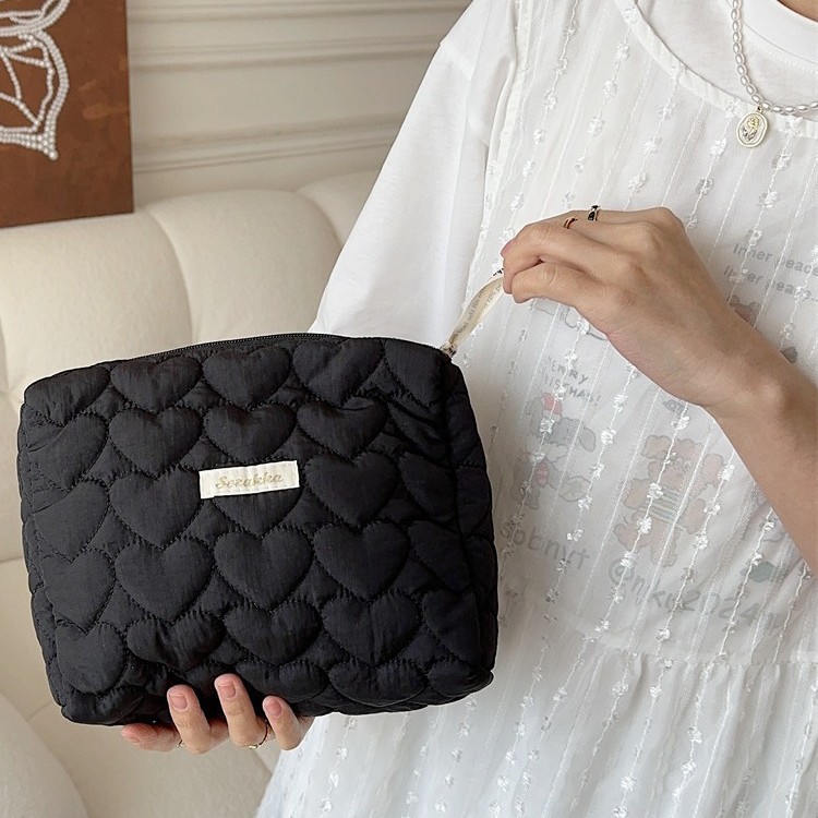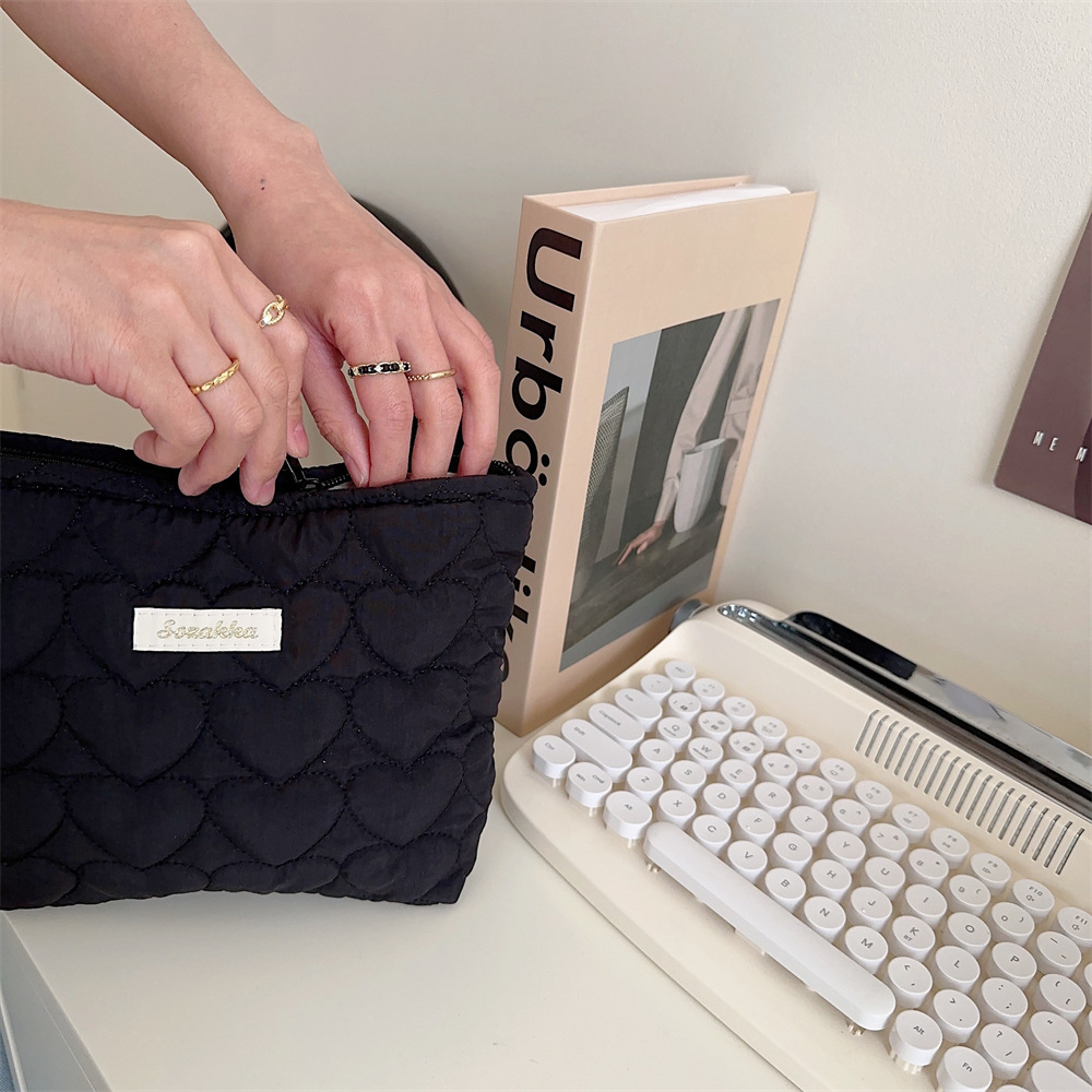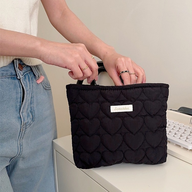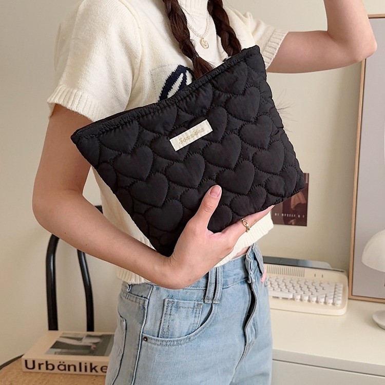 💖 肌触りの良いコットンキルティングに、ハート刺繍がちりばめられた愛らしいクラッチバッグです。