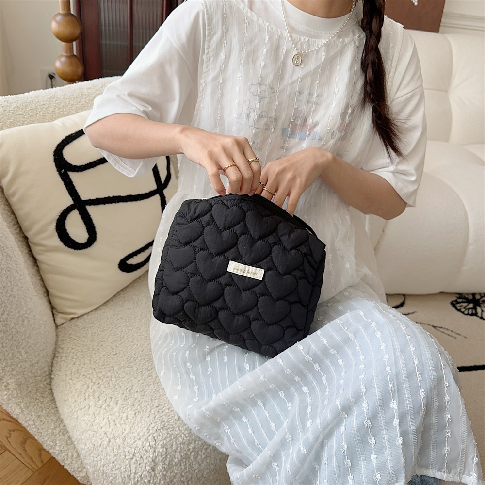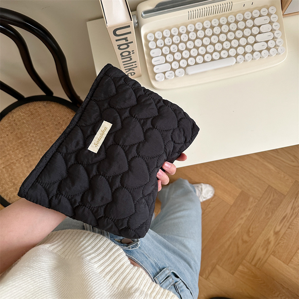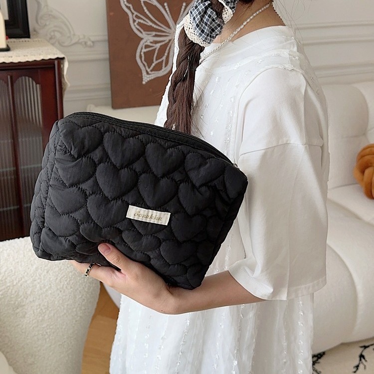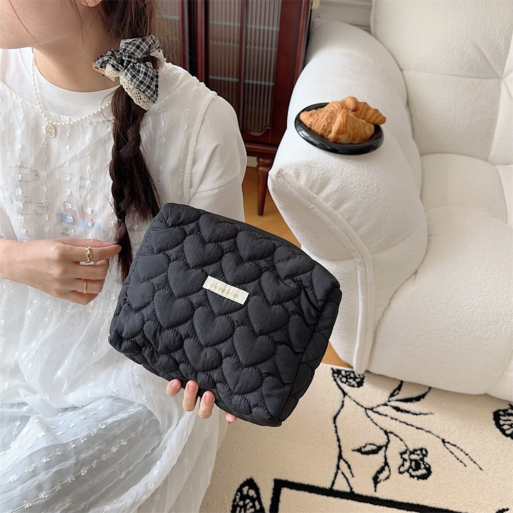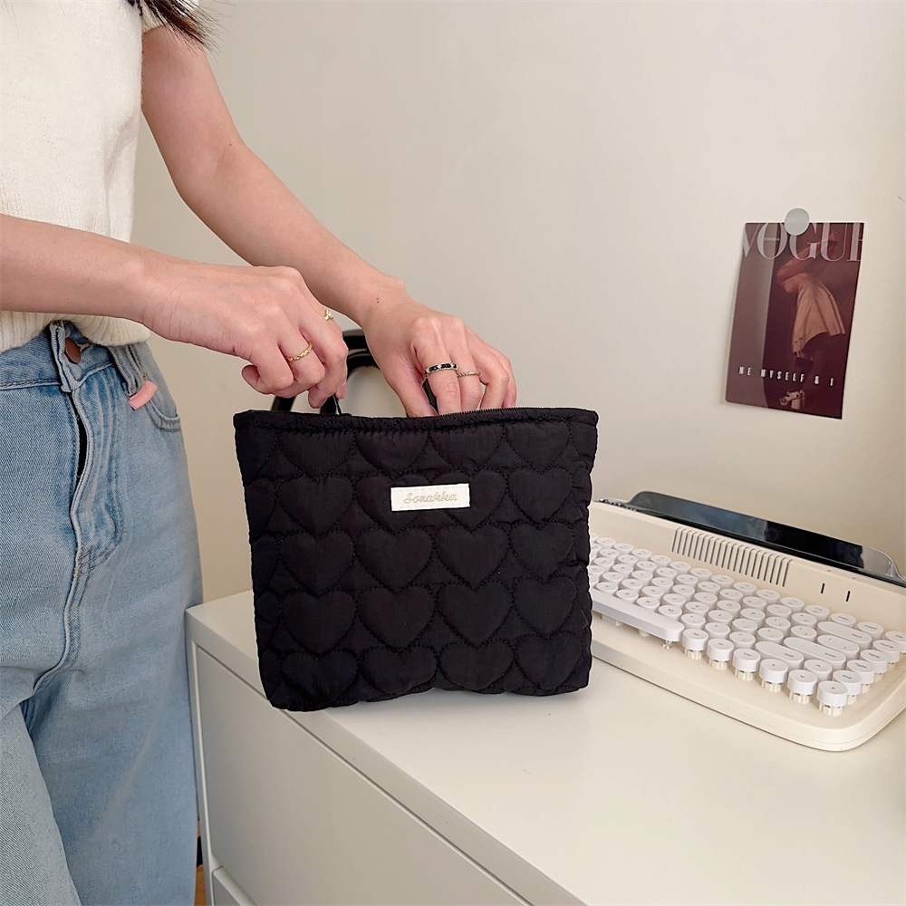 💖 肌触りの良いコットンキルティングに、ハート刺繍がちりばめられた愛らしいクラッチバッグです。