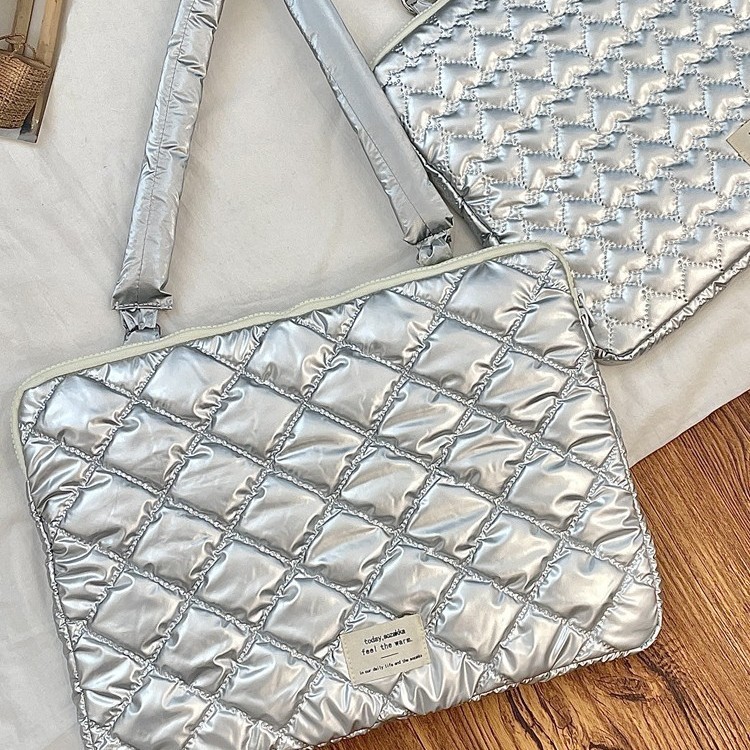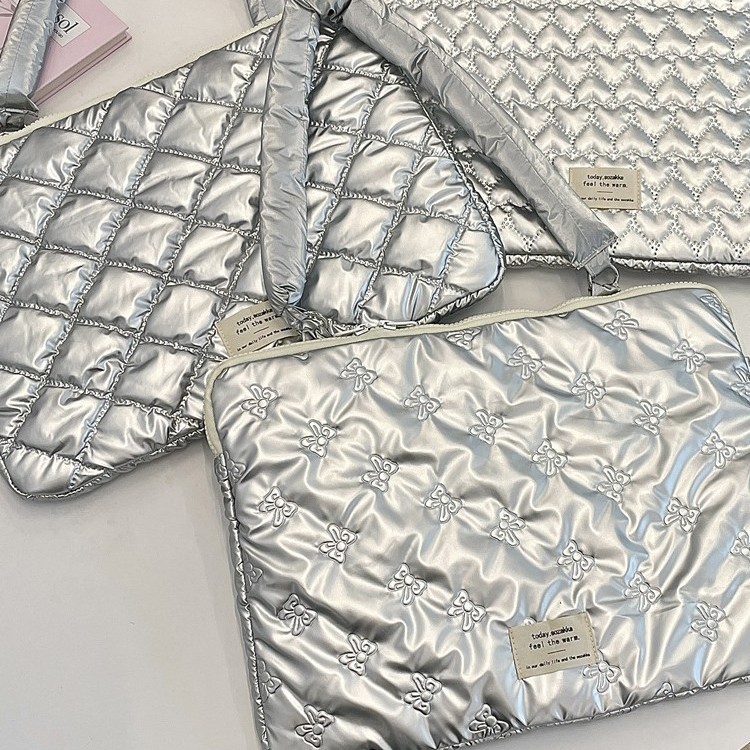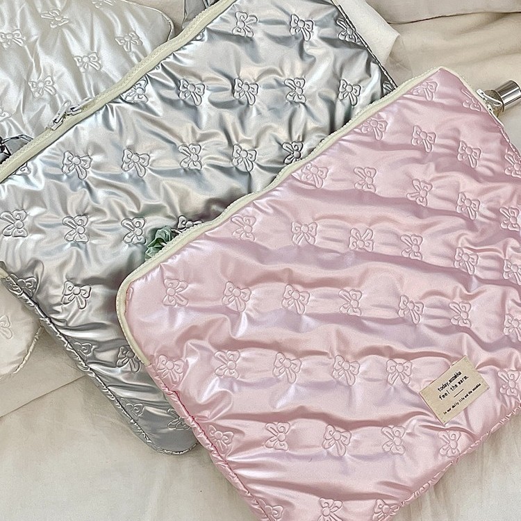 💼 可愛らしいリボン刺繍がちりばめられた、ふんわりキルティング加工のスリーブ&ショルダーバッグです。