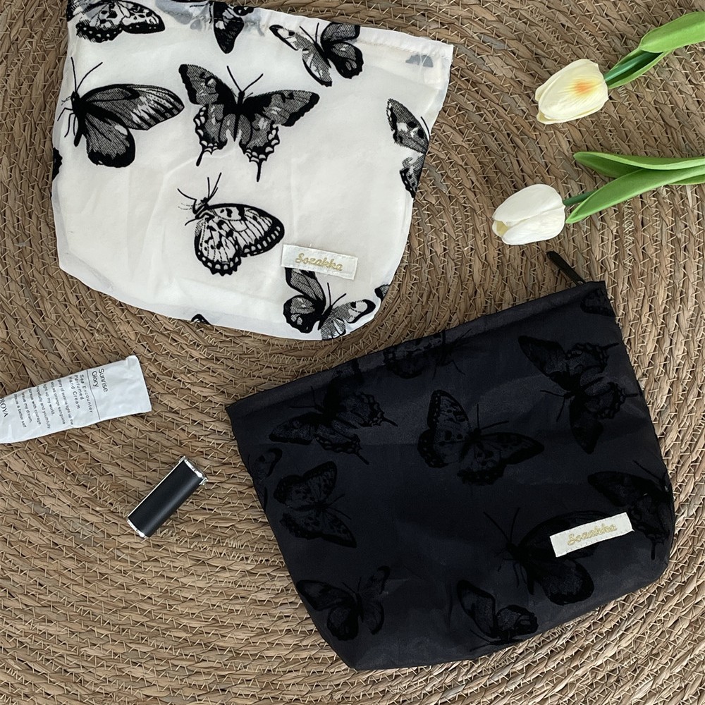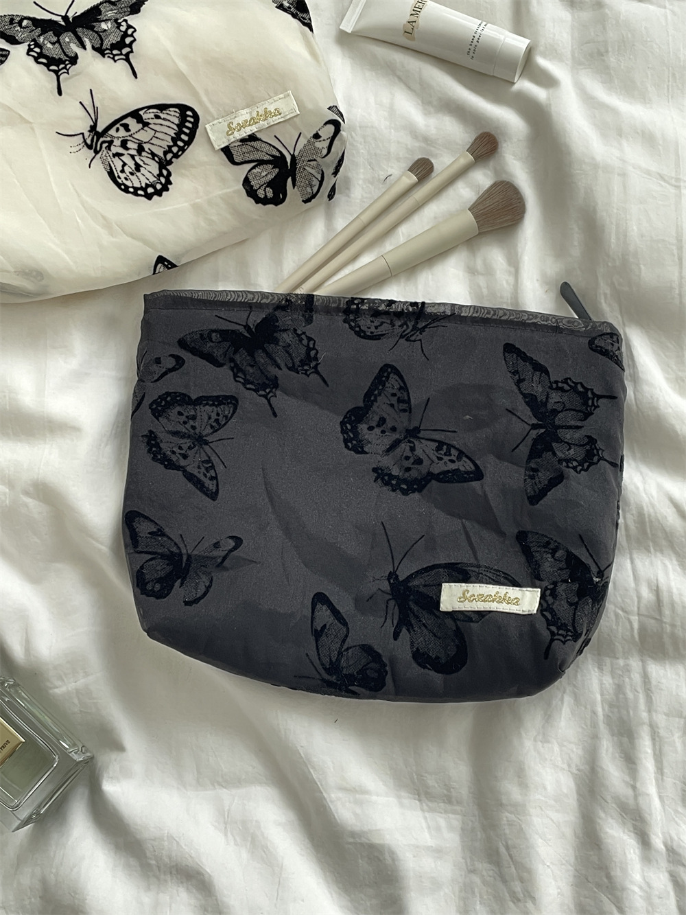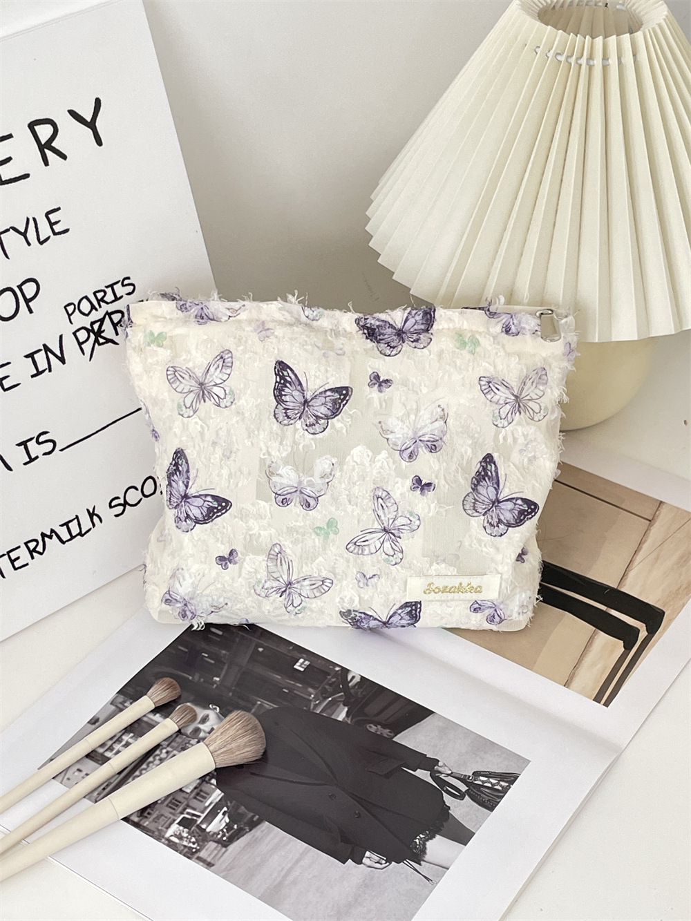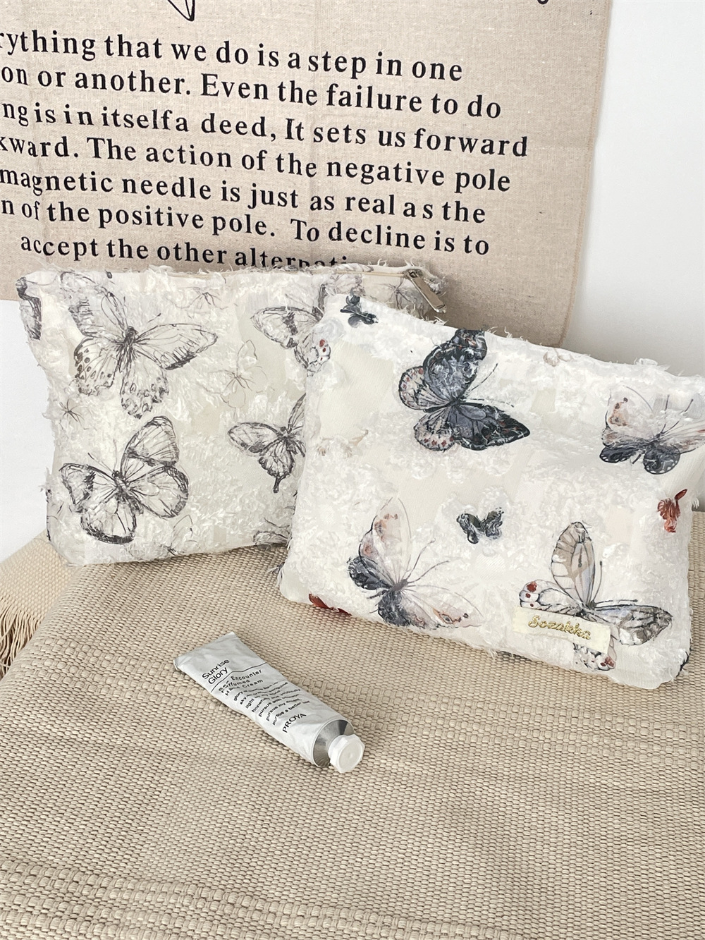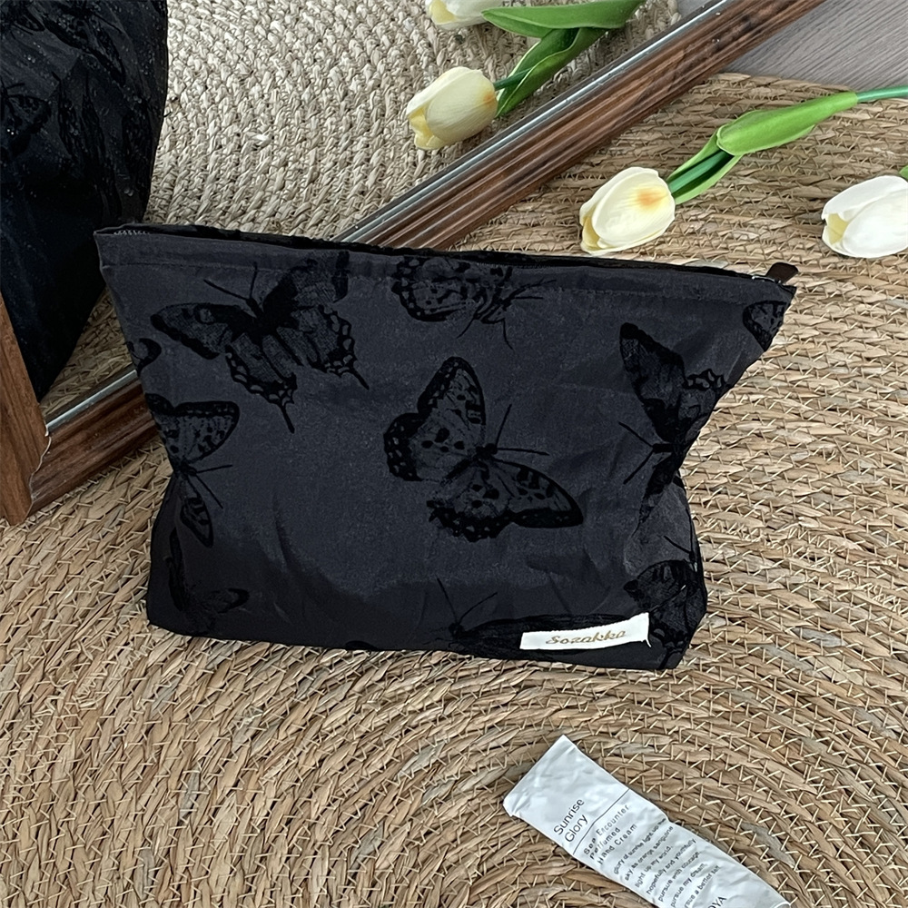 レース蝶柄コスメポーチ 大容量クラッチ収納バッグ