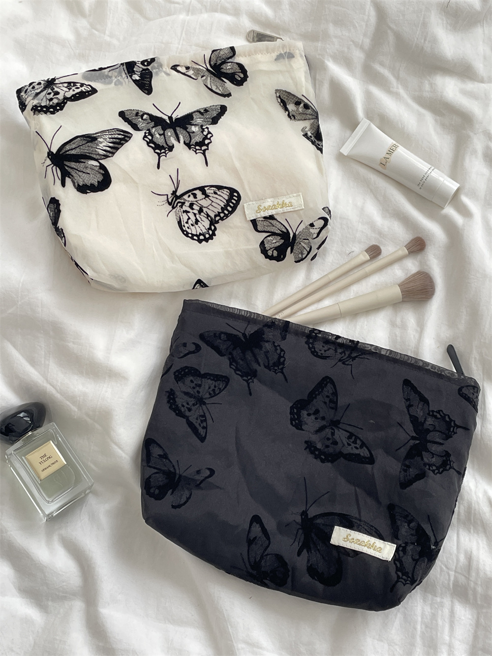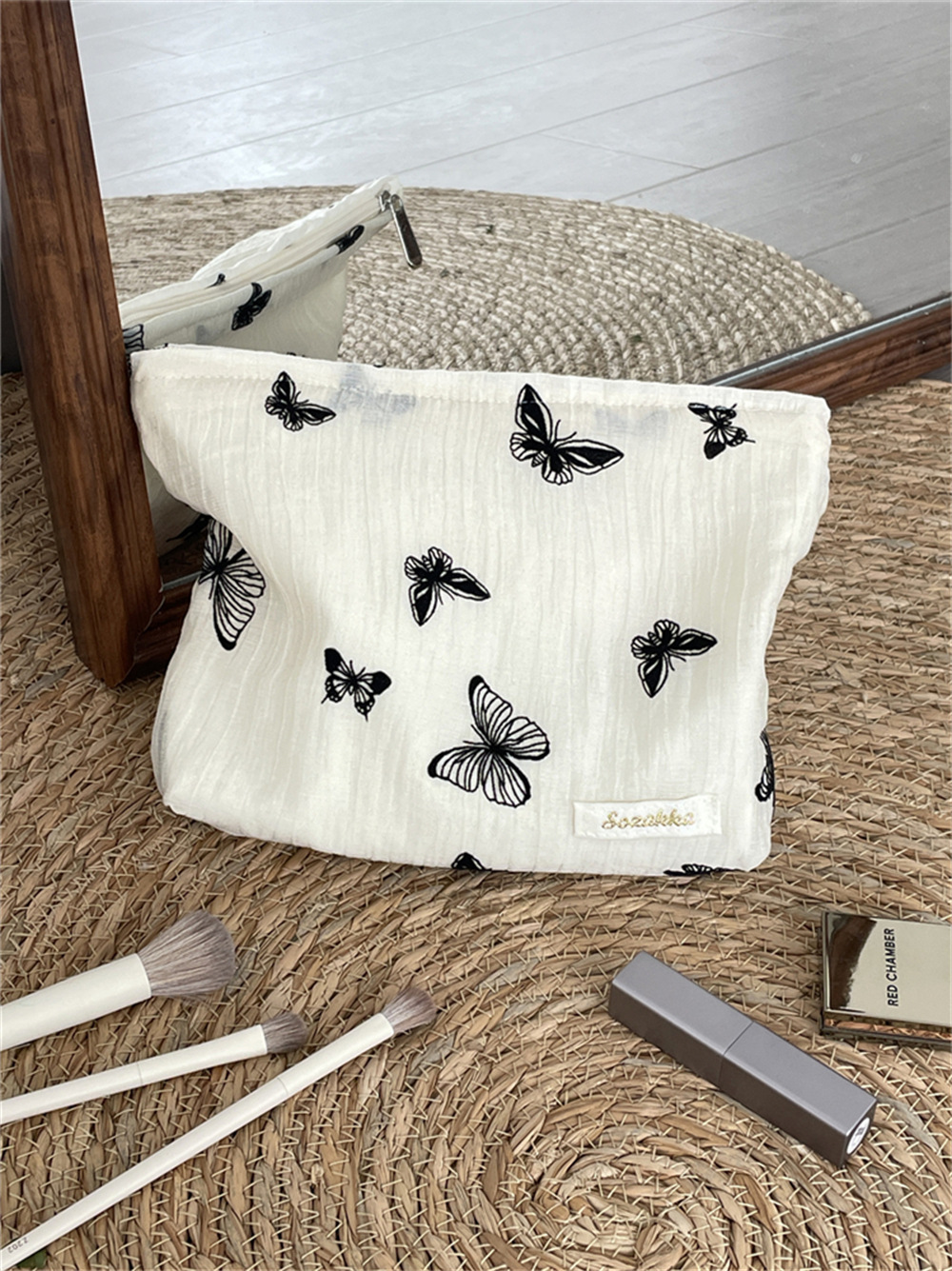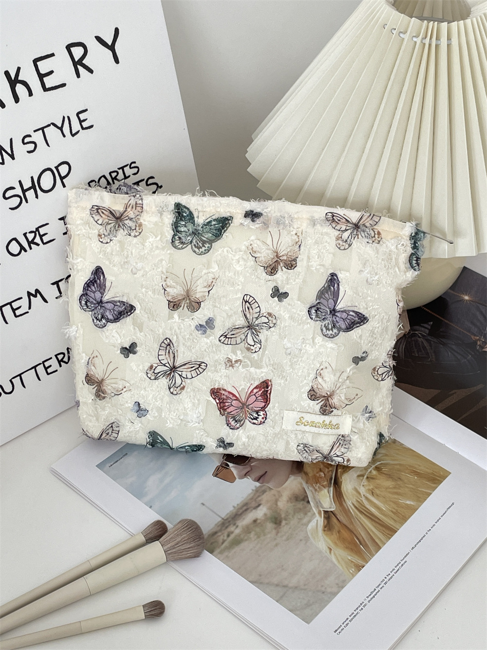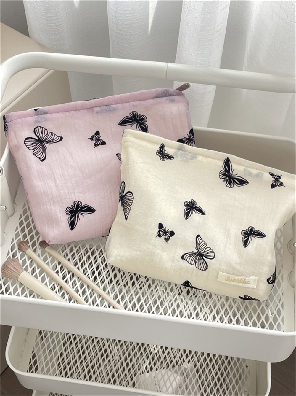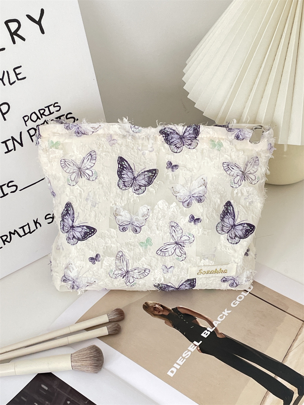 レース蝶柄コスメポーチ 大容量クラッチ収納バッグ