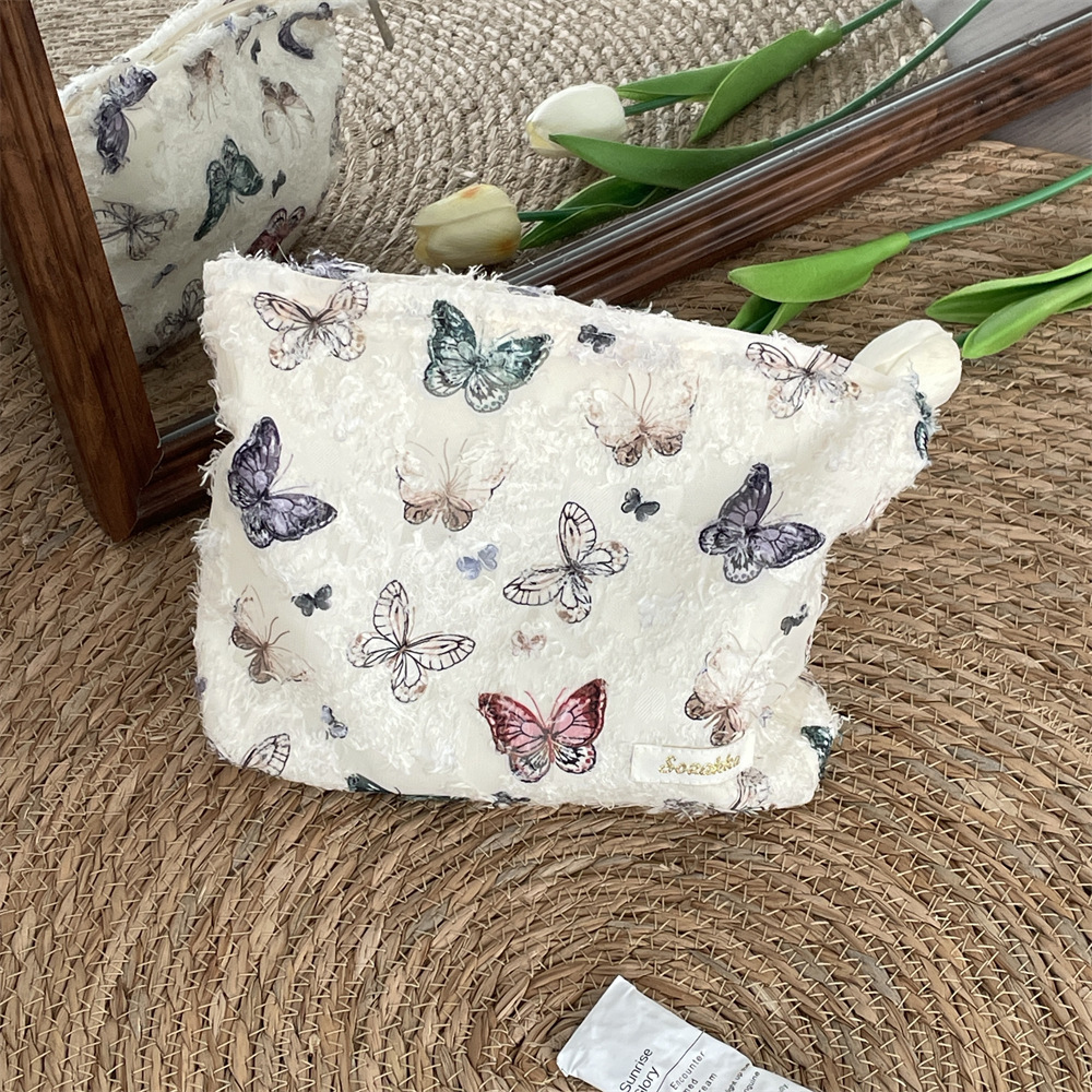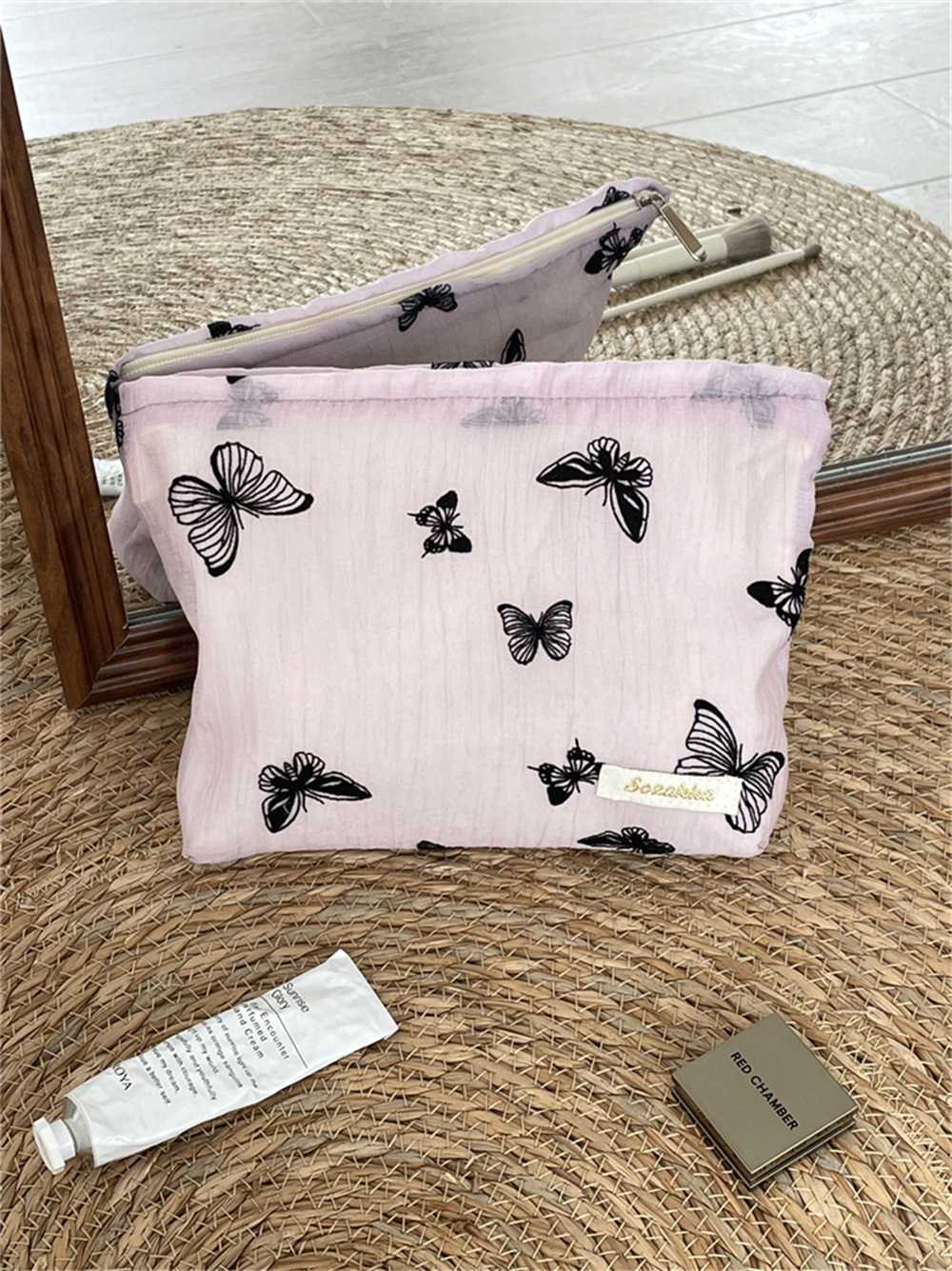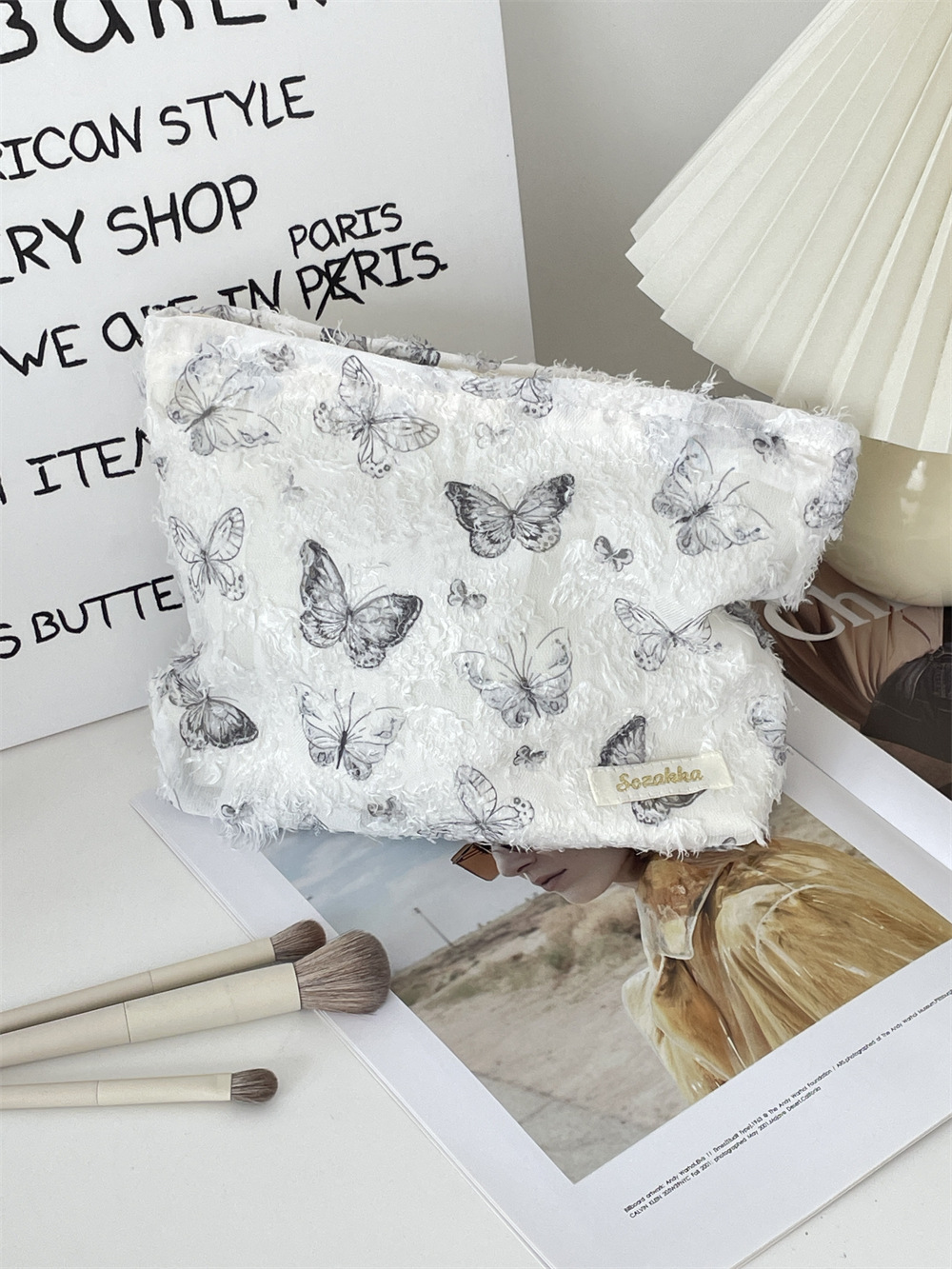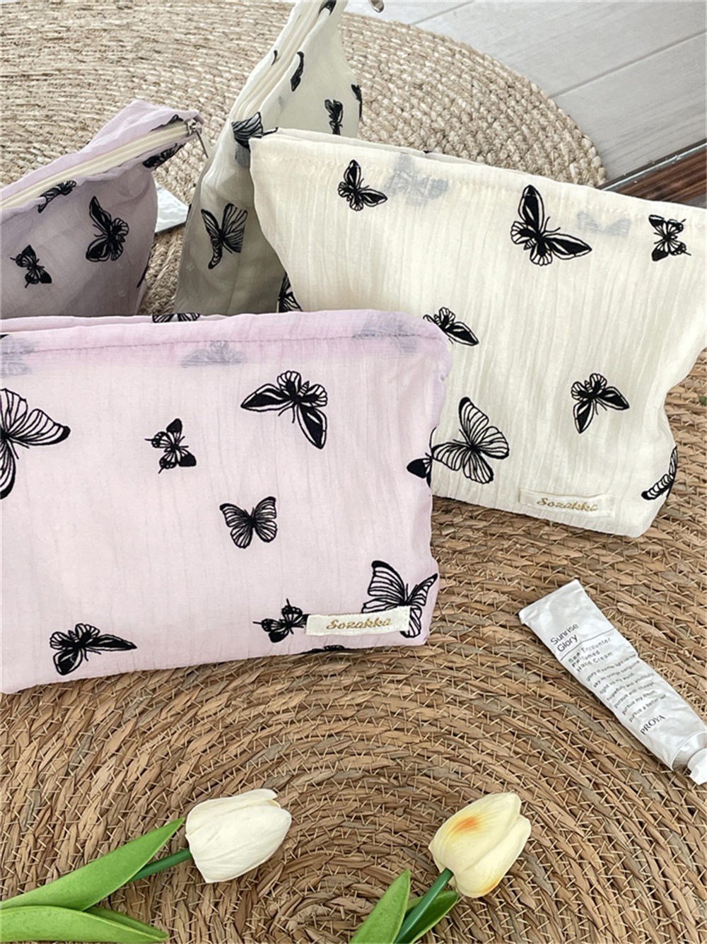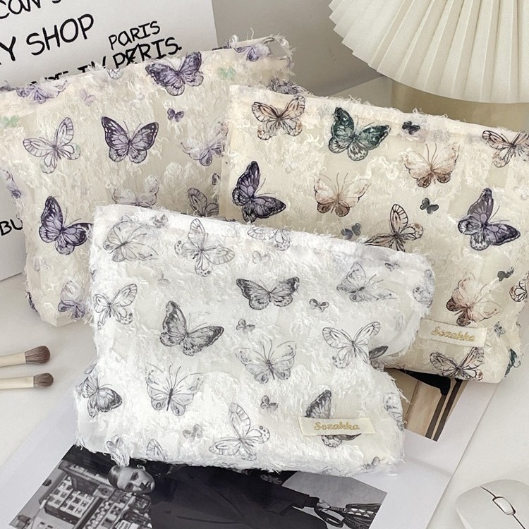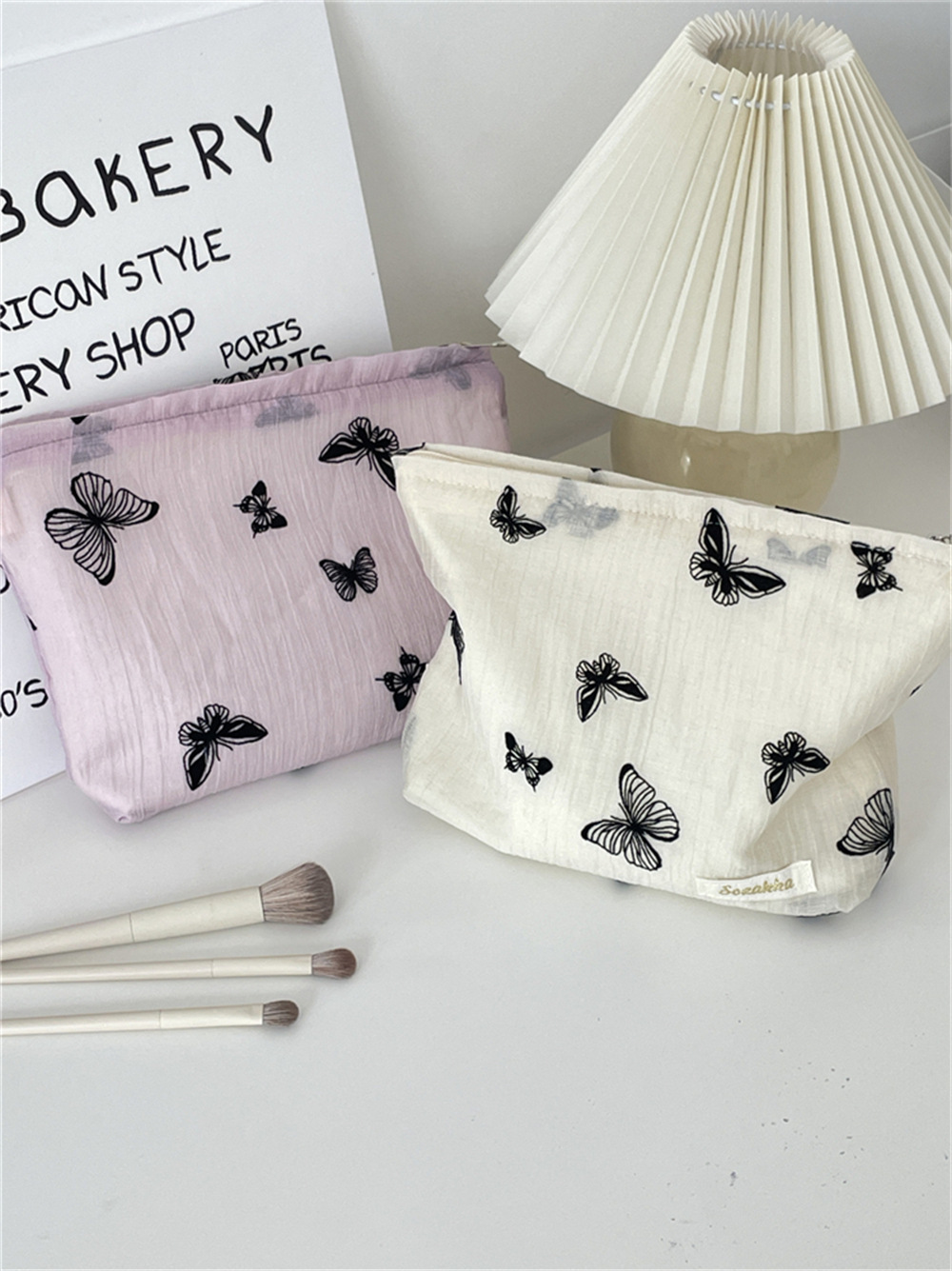 レース蝶柄コスメポーチ 大容量クラッチ収納バッグ