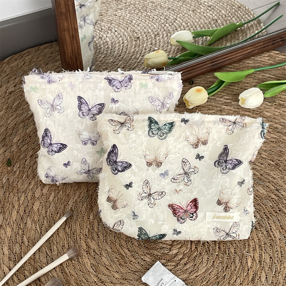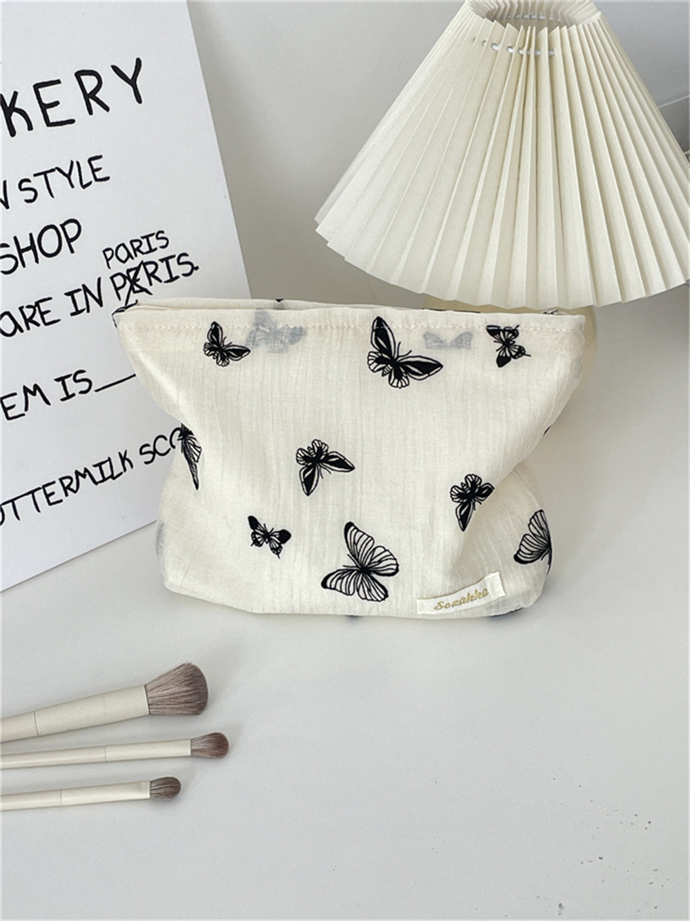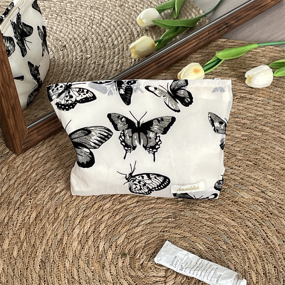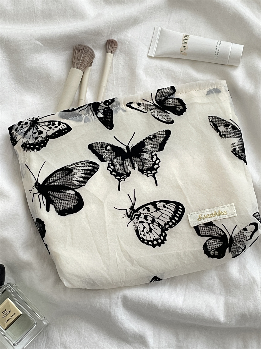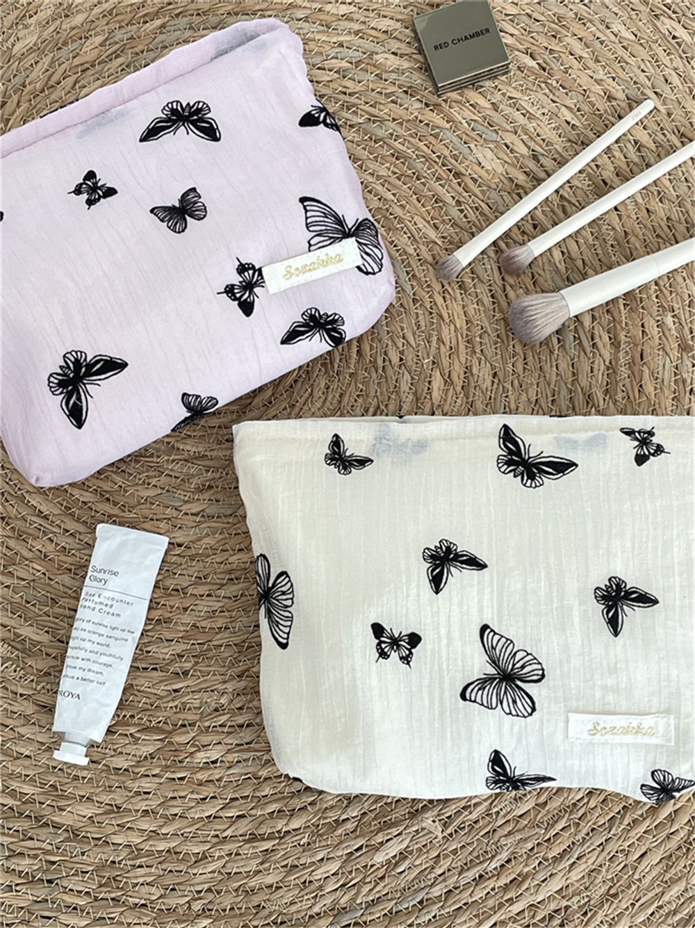 レース蝶柄コスメポーチ 大容量クラッチ収納バッグ