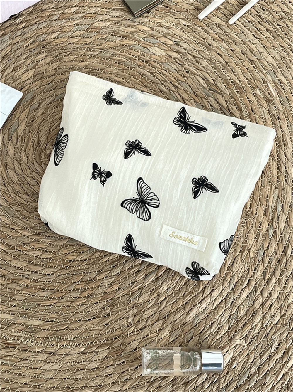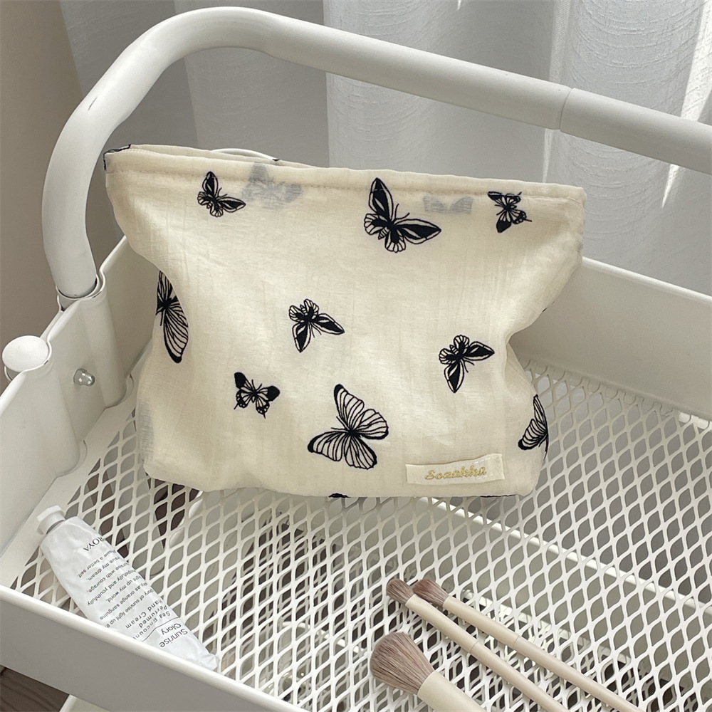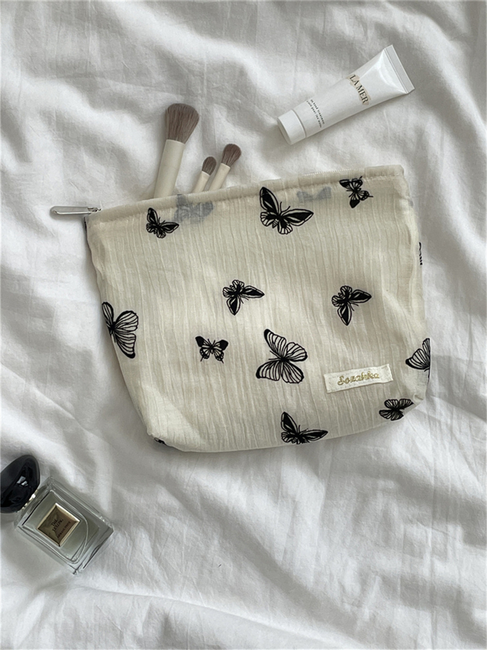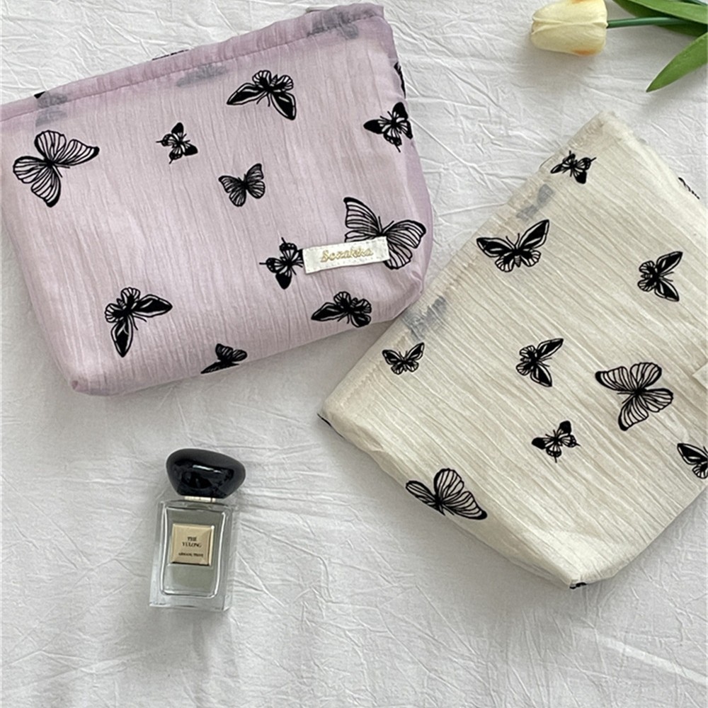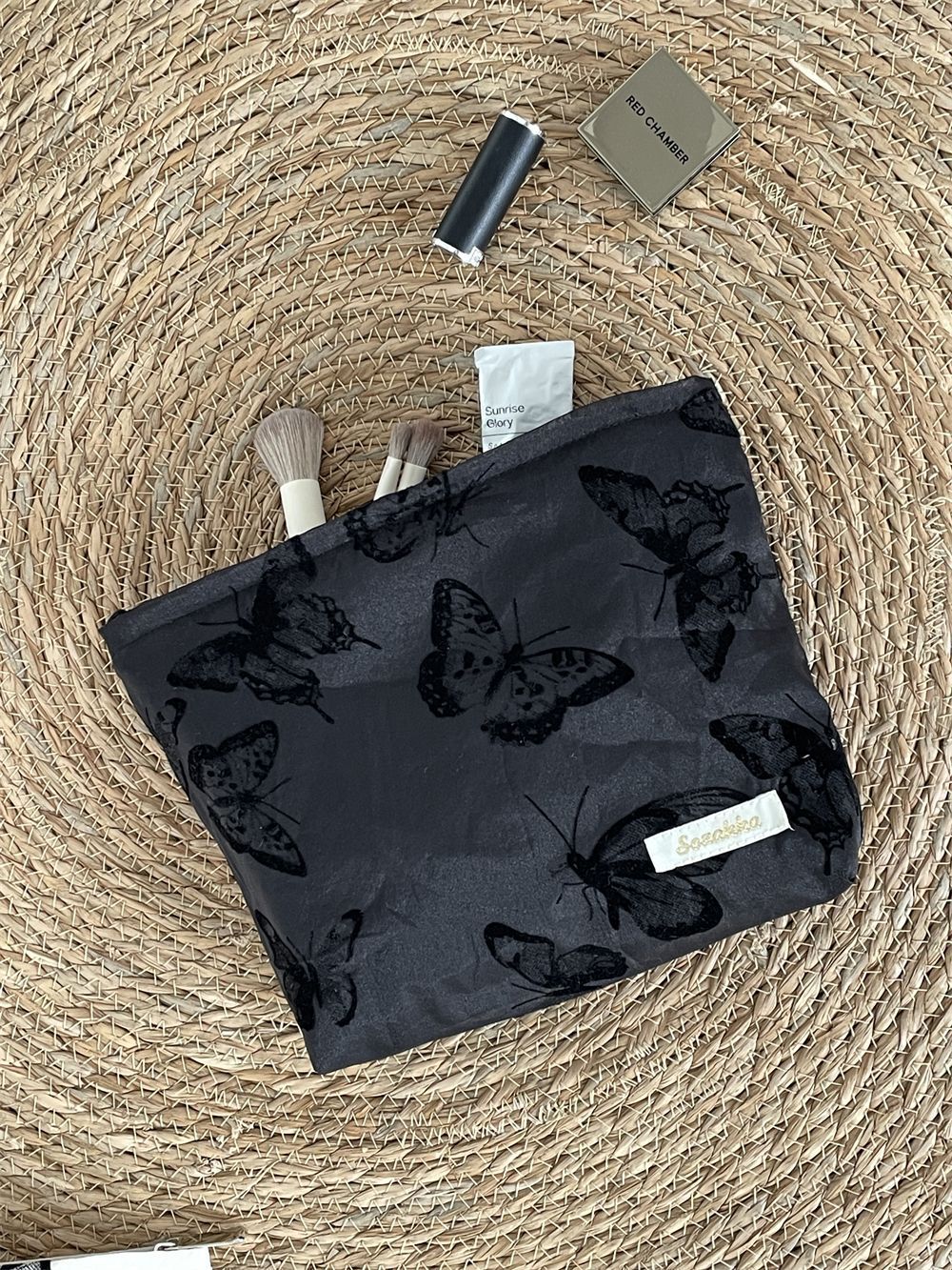 レース蝶柄コスメポーチ 大容量クラッチ収納バッグ