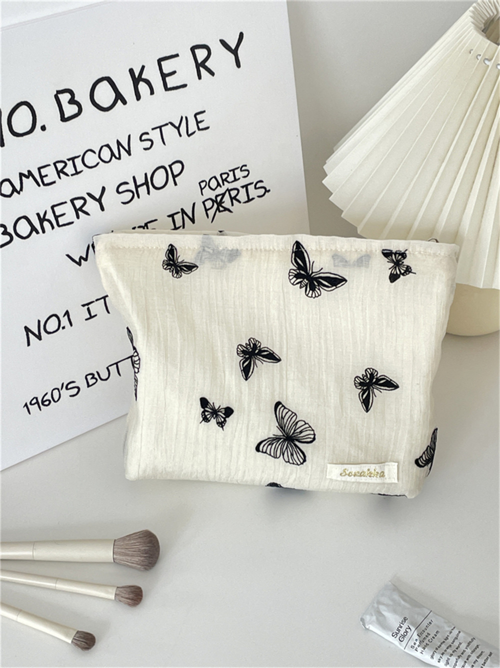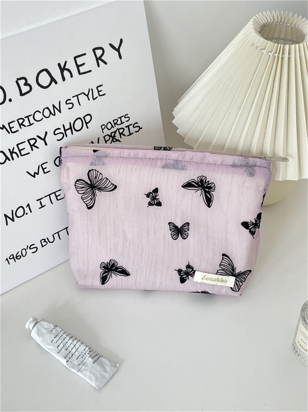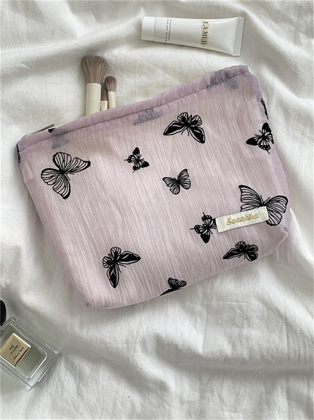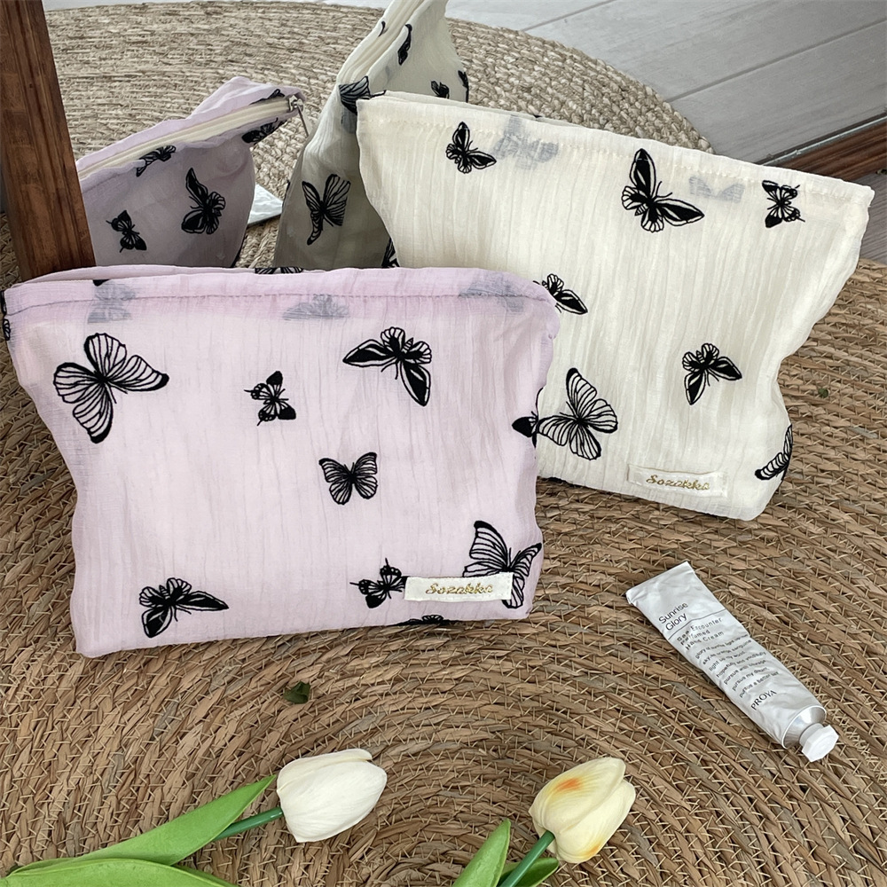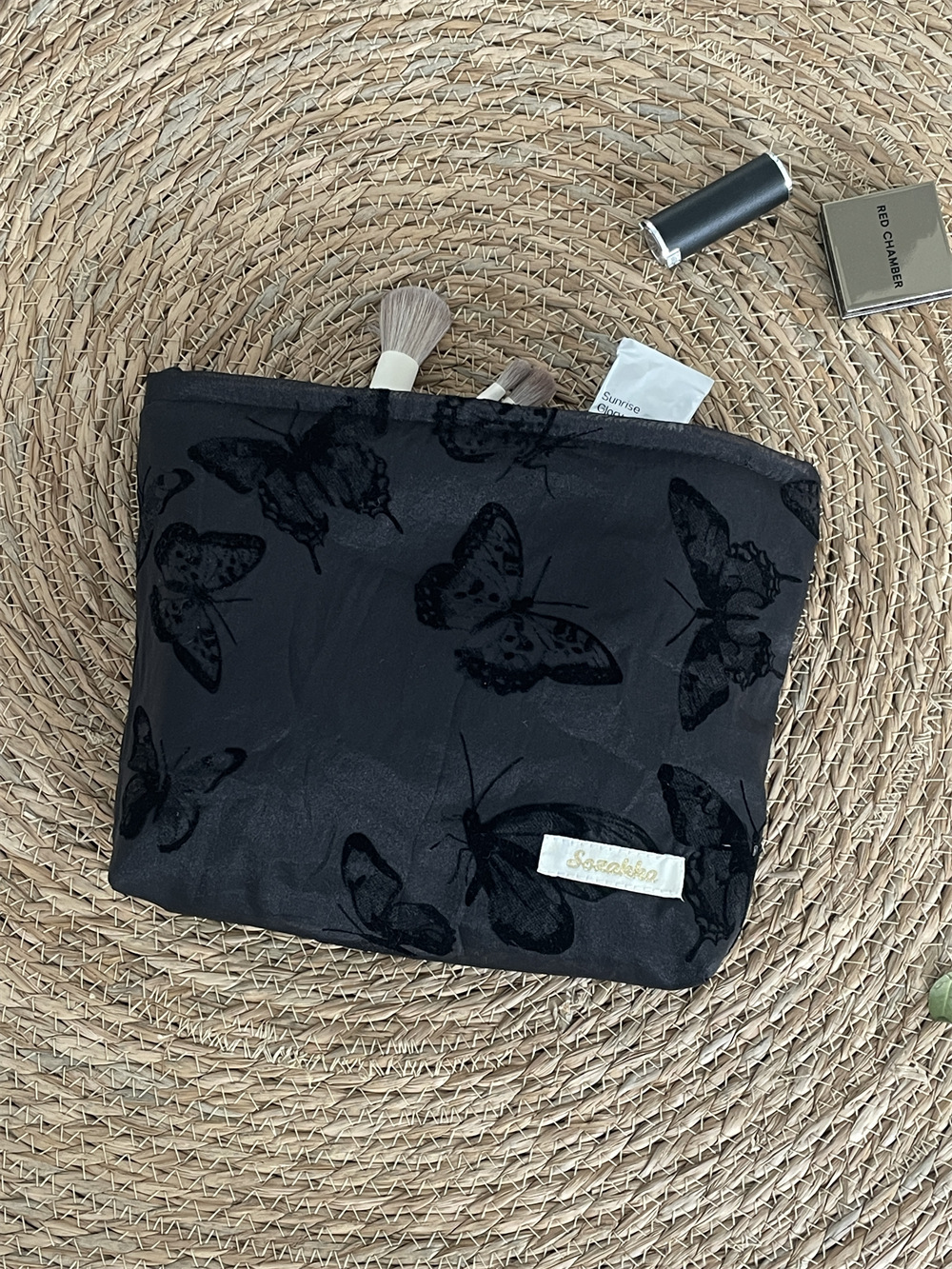 レース蝶柄コスメポーチ 大容量クラッチ収納バッグ