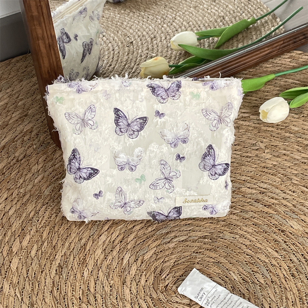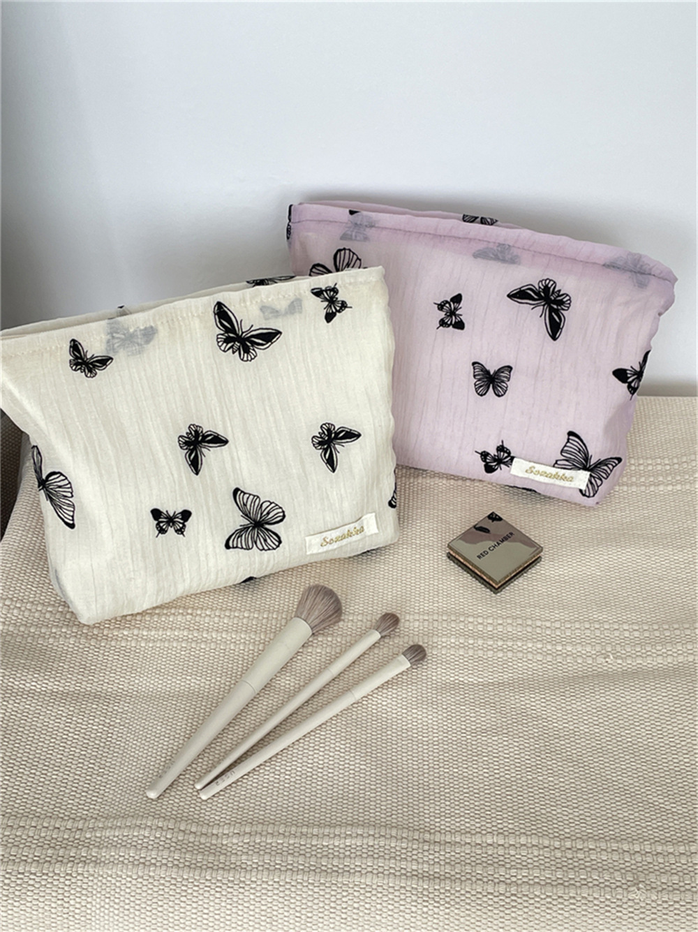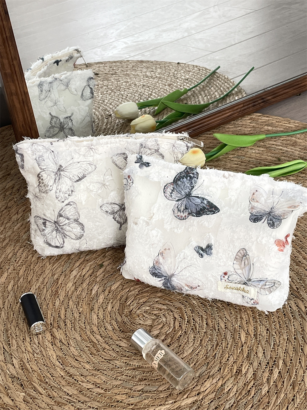 kawai-profileレース蝶柄コスメポーチ 大容量クラッチ収納バッグ