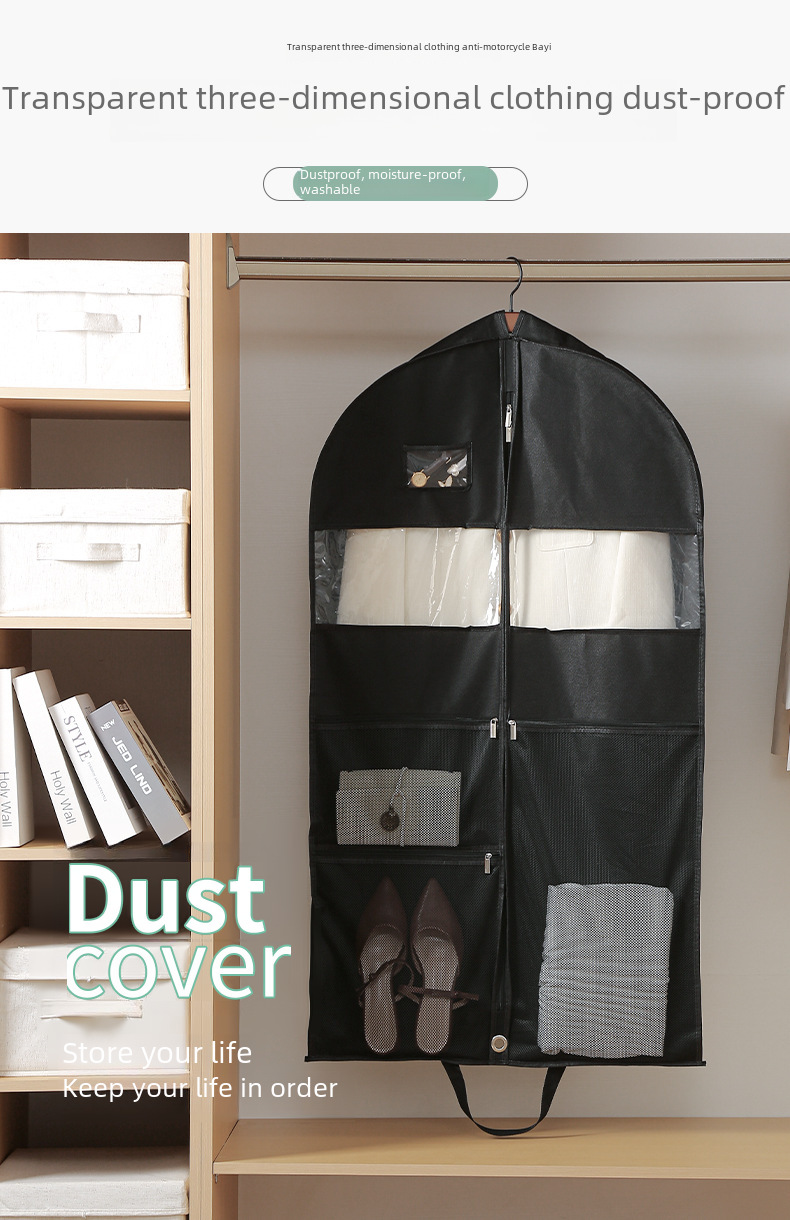 多機能吊り下げ式厚手不織布ダストカバー付き衣類収納バッグ
