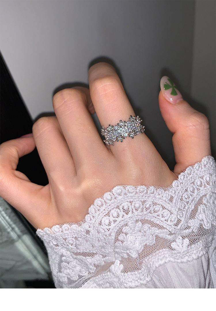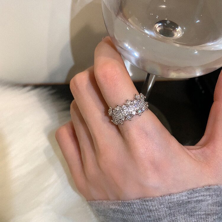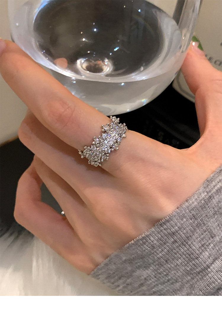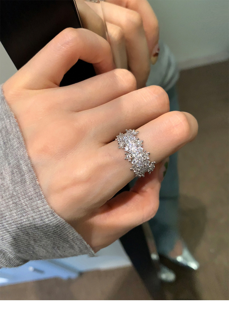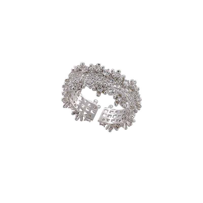 A dazzling sparkle that wraps your fingers in a gorgeous way! This wide pave open ring has cubic zirconia (CZ) set tightly all over the band. The strong sparkle, which can be called "ultra flash", will instantly catch your eye.