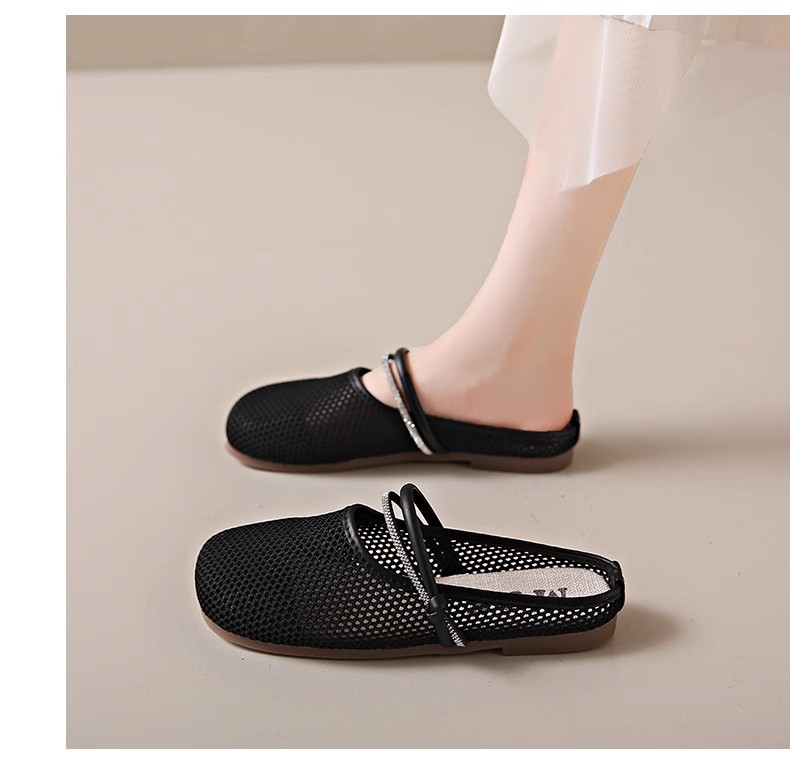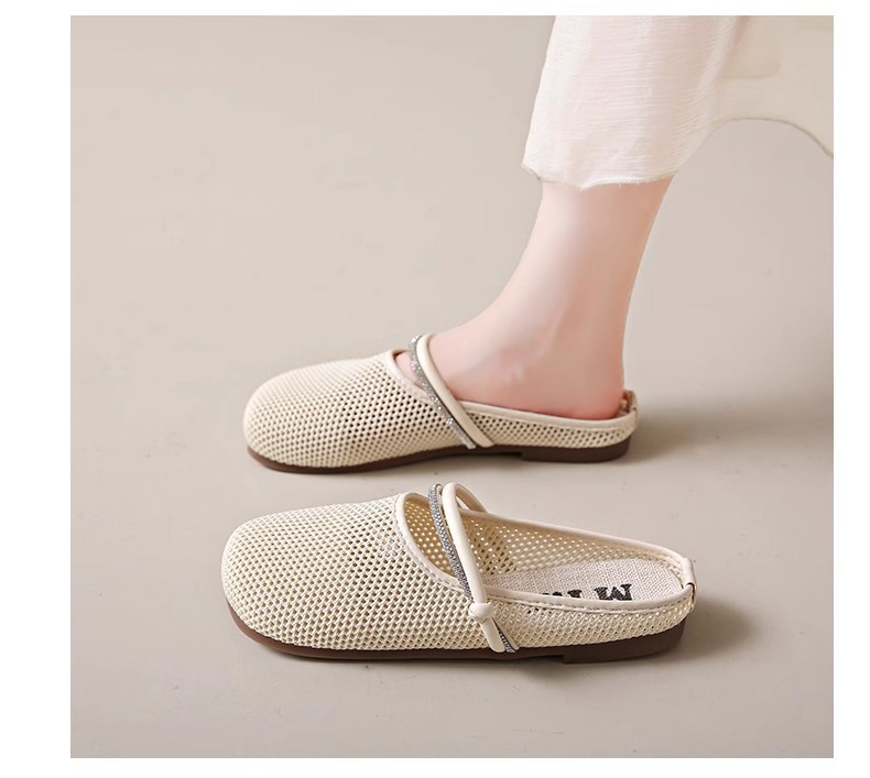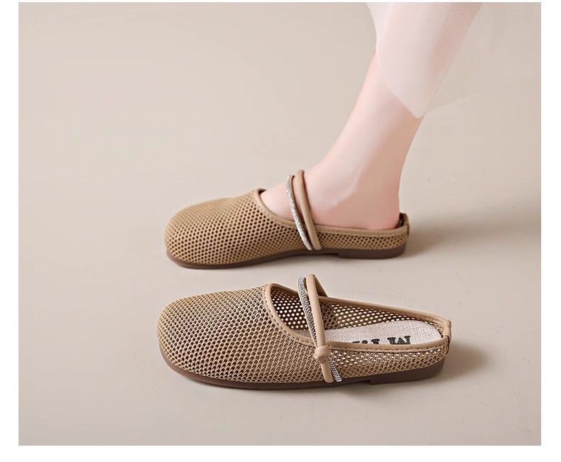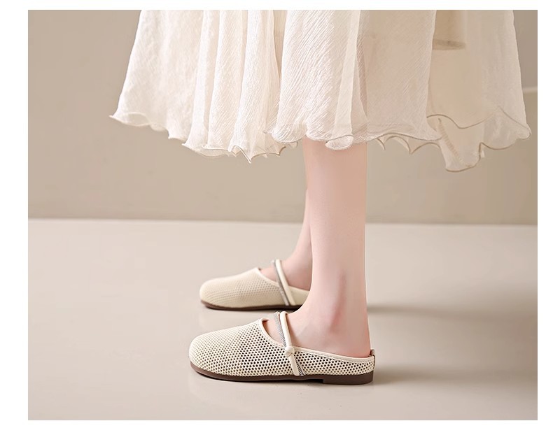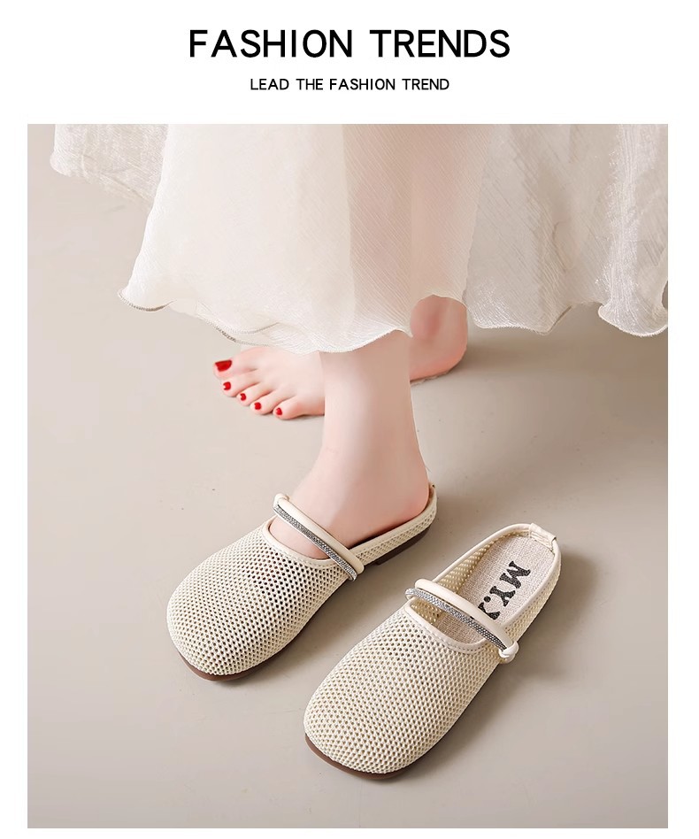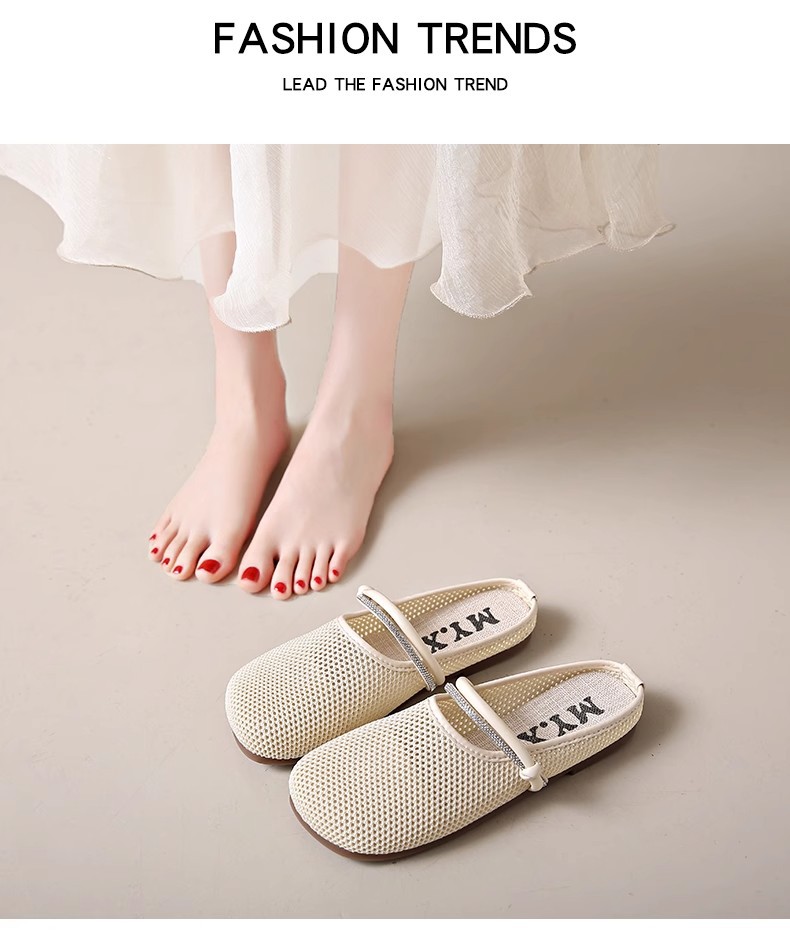 通気性メッシュスリッポン|ハーフスリッパスタイルのフラットシューズ レディース