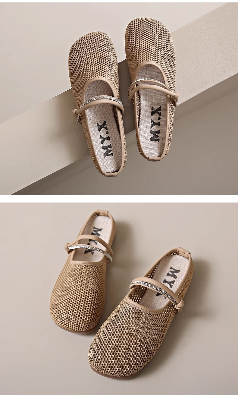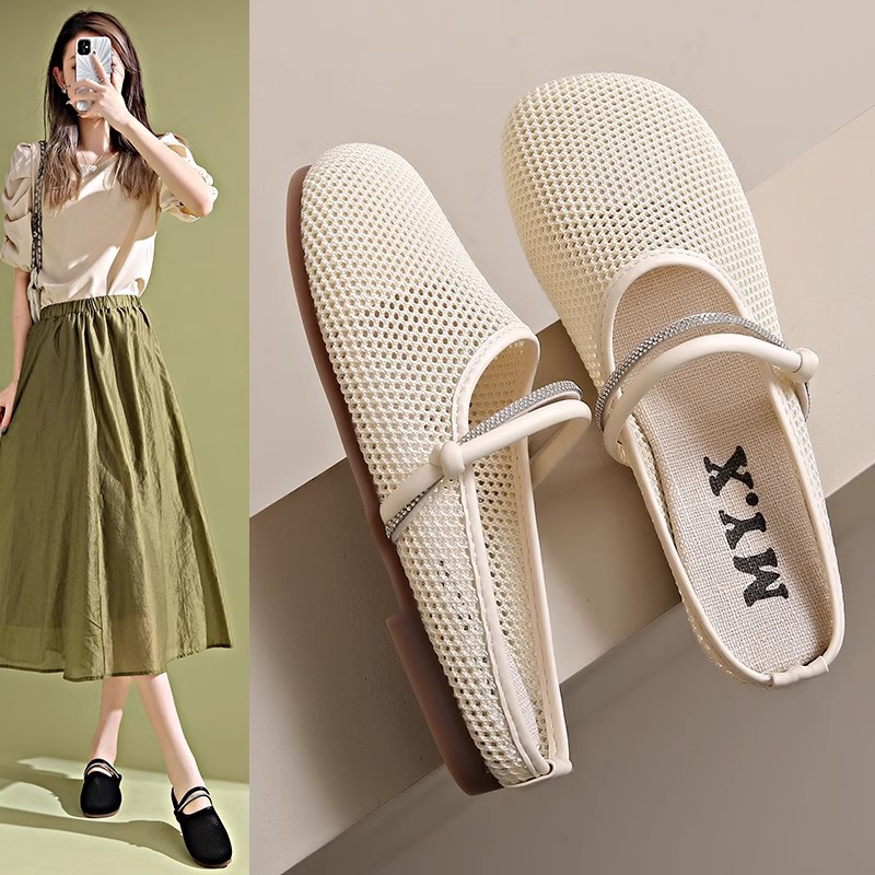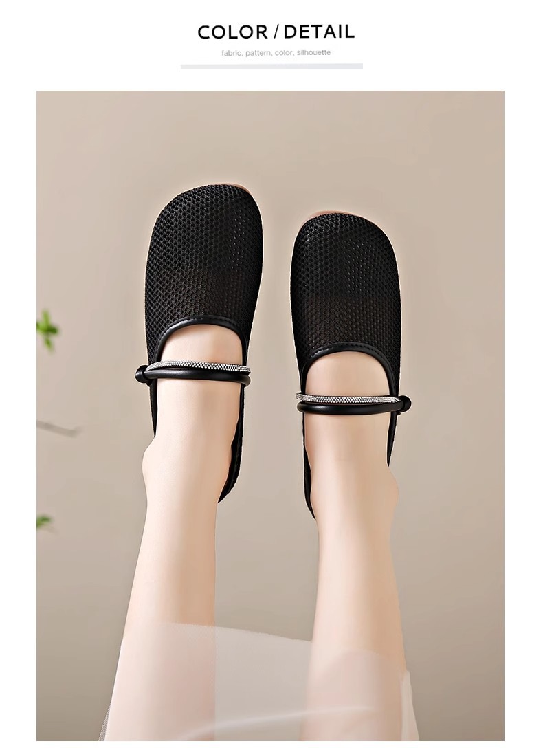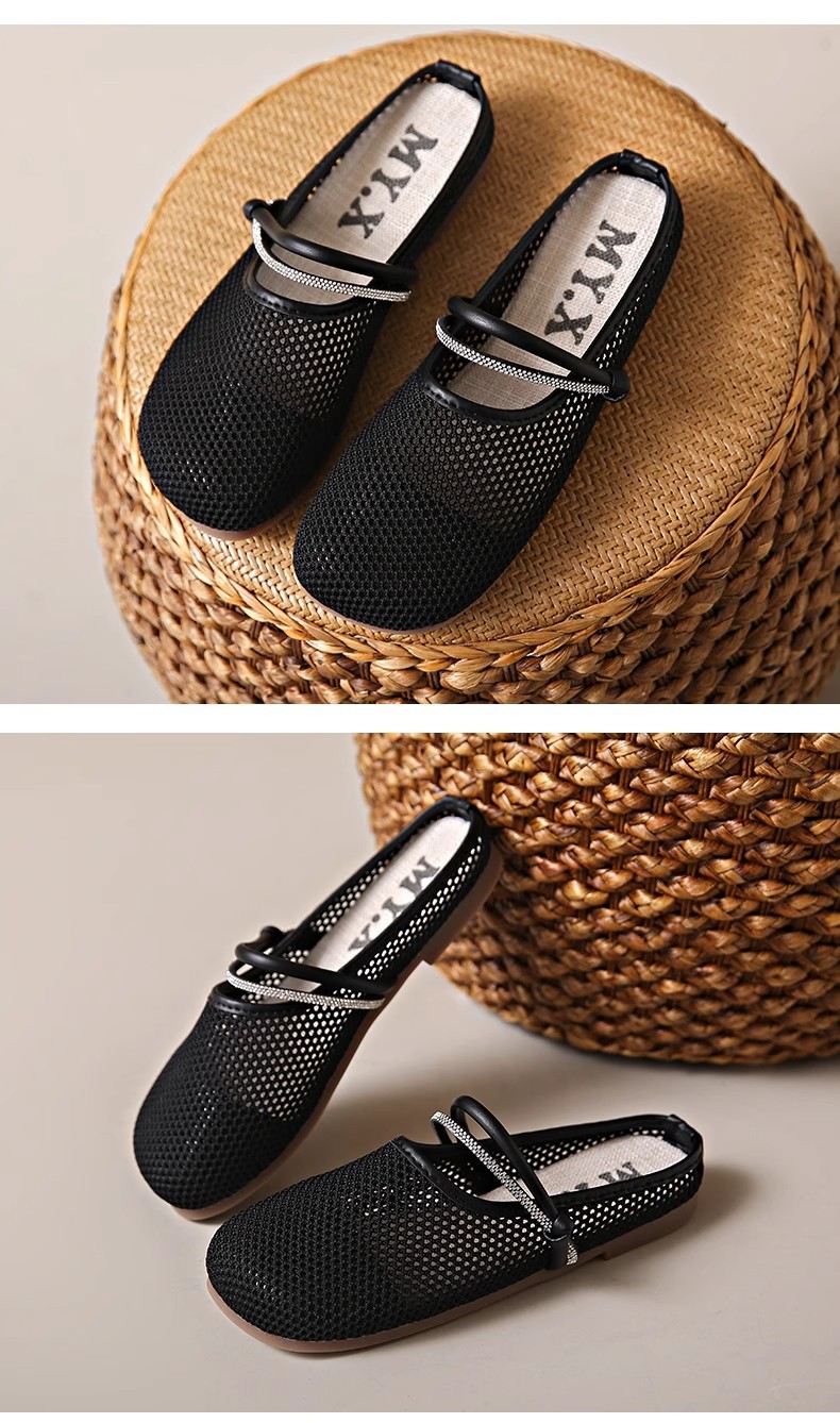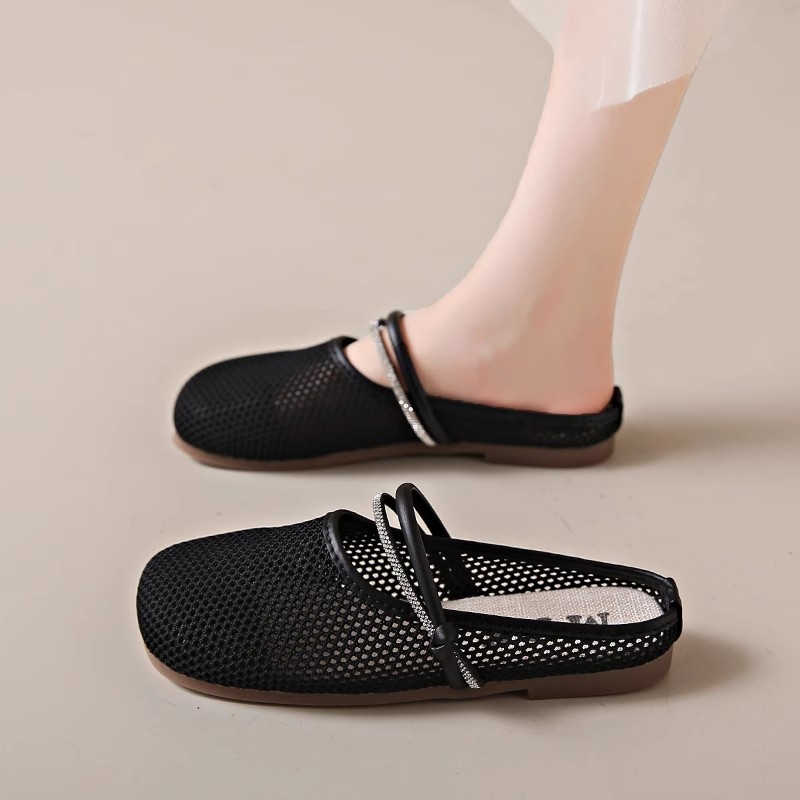 通気性メッシュスリッポン|ハーフスリッパスタイルのフラットシューズ レディース