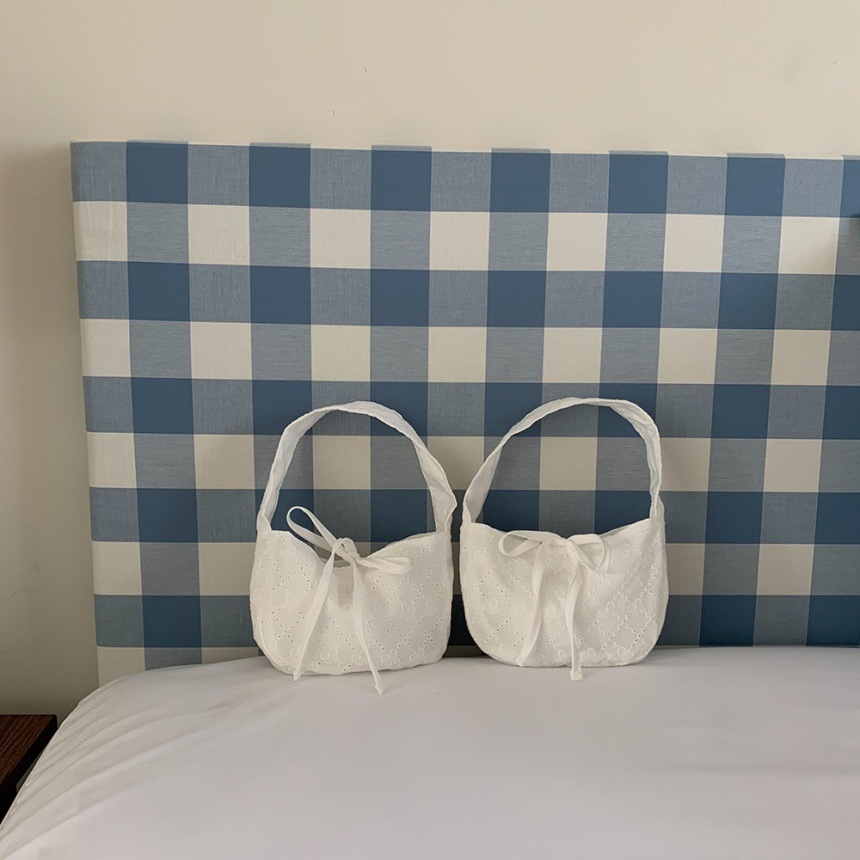 韓国風レース&リボン ミニトートバッグ デイリーコットンレーストートバッグ