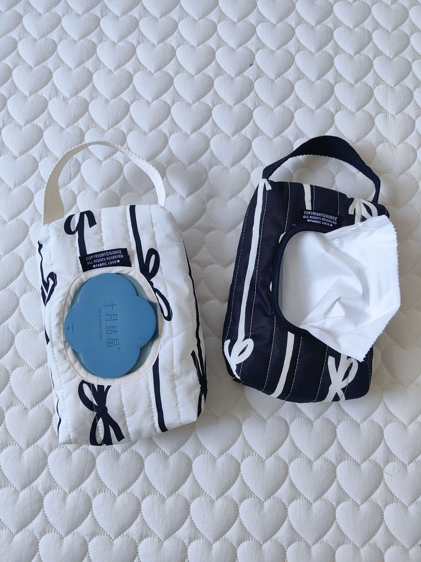 kawai-profileキルティングリボン柄 ハンギングウェットワイプポーチ 韓国風リボンキルティングベビーカーポーチ