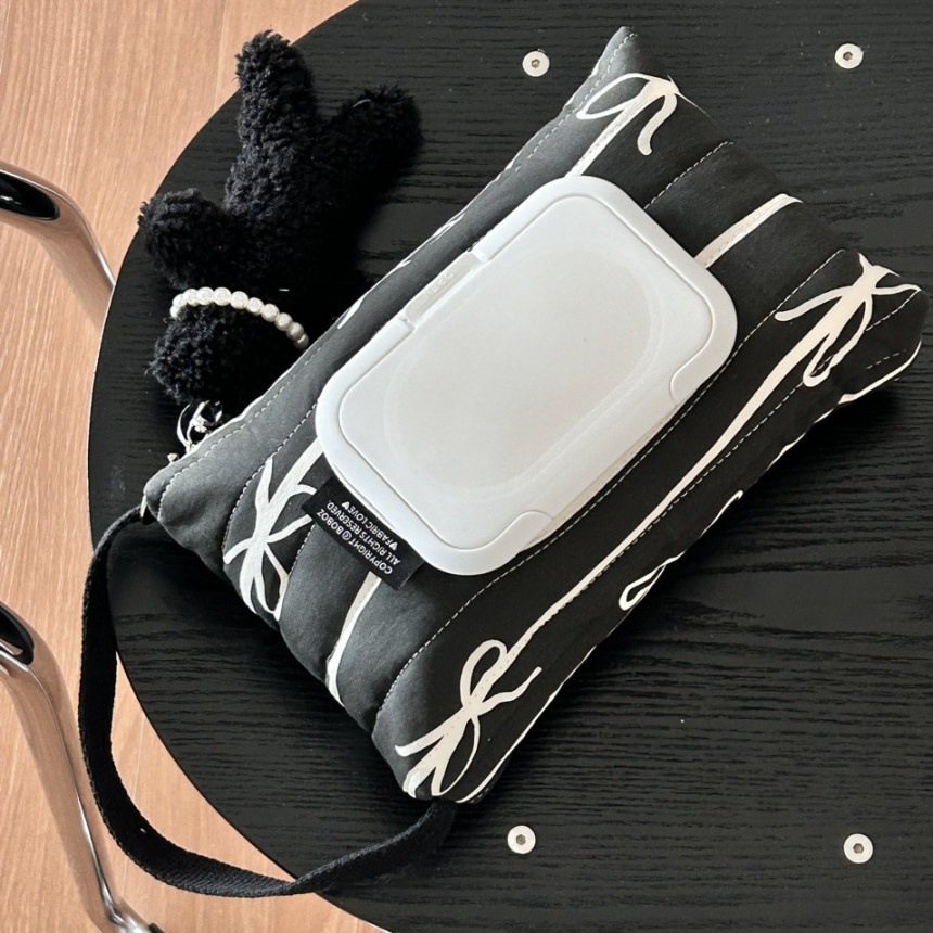 キルティングリボン柄 ハンギングウェットワイプポーチ 韓国風リボンキルティングベビーカーポーチ