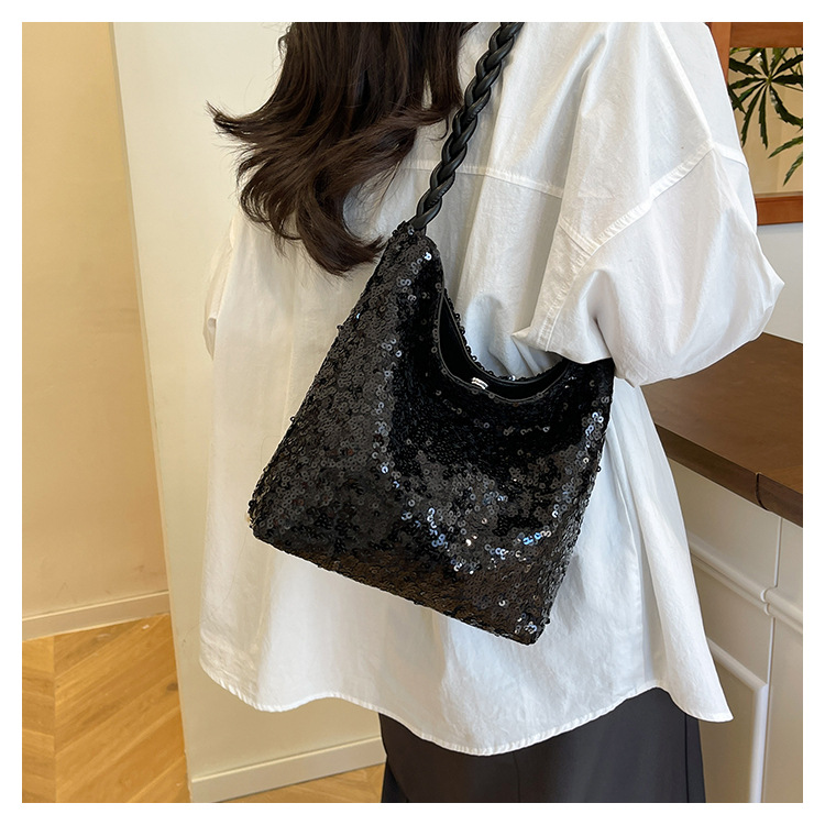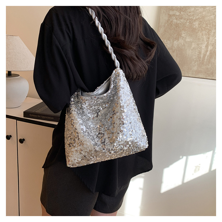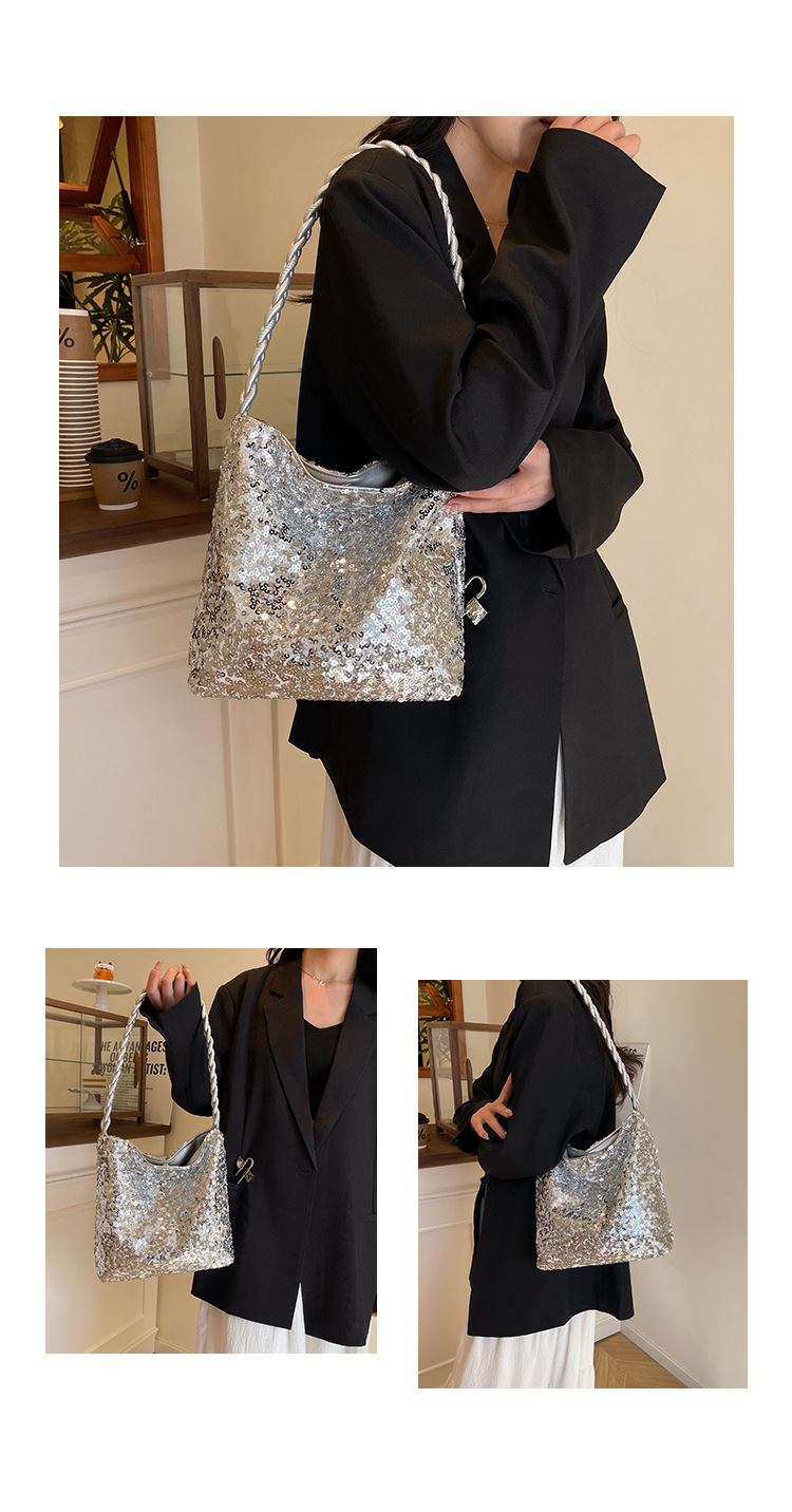外出やお出かけにぴったりの2025年春新作スパンコールショルダーバッグ。