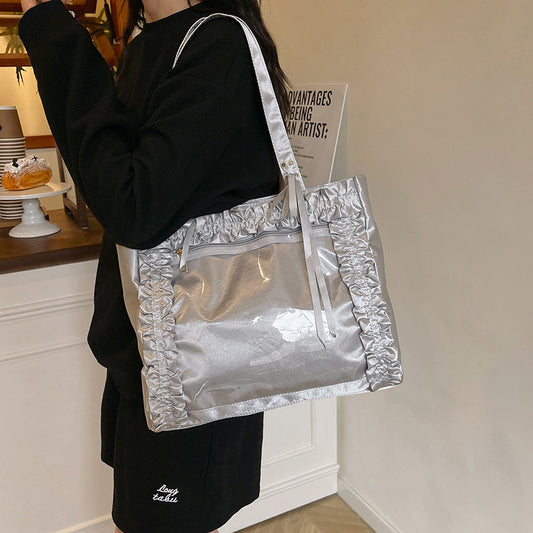 リボン付き光沢トートバッグ – 5色展開・大容量