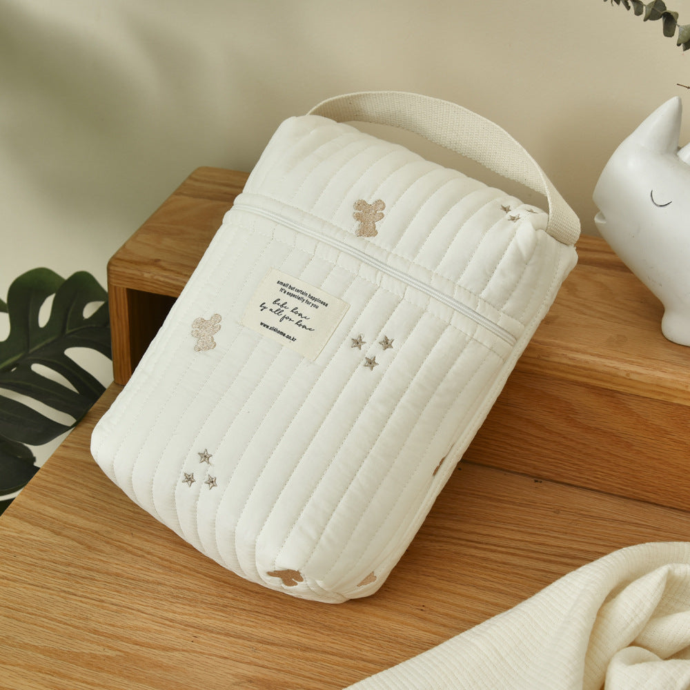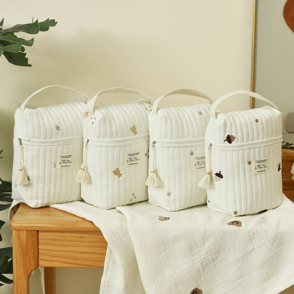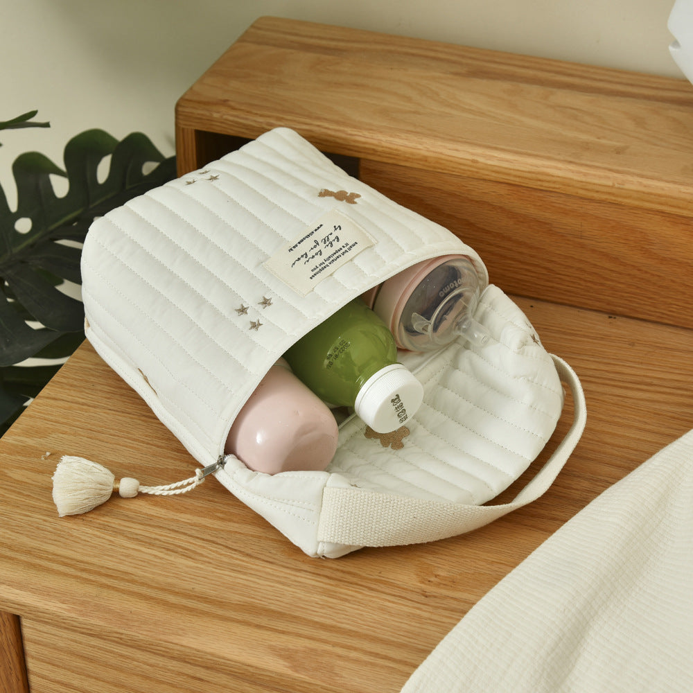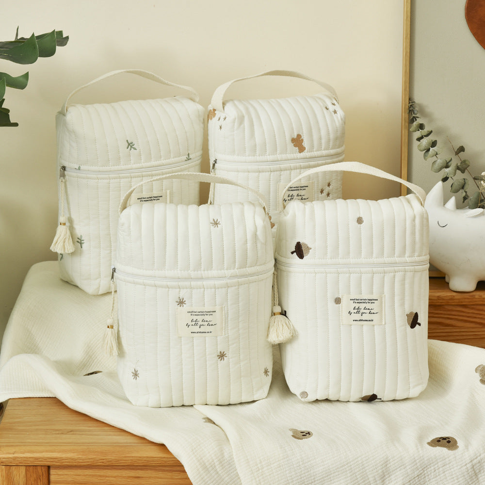 kawai-profileインスタイル キルティング刺繍マザーズバッグ|哺乳瓶・おむつ収納付き2WAYハンギングバッグ