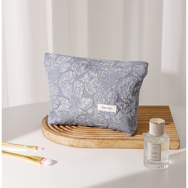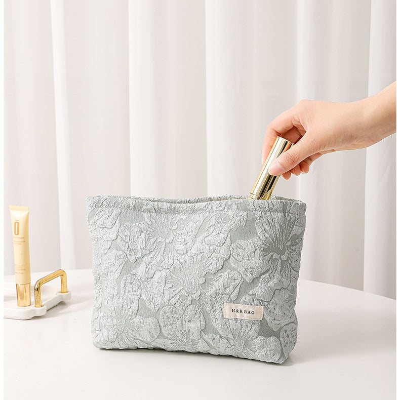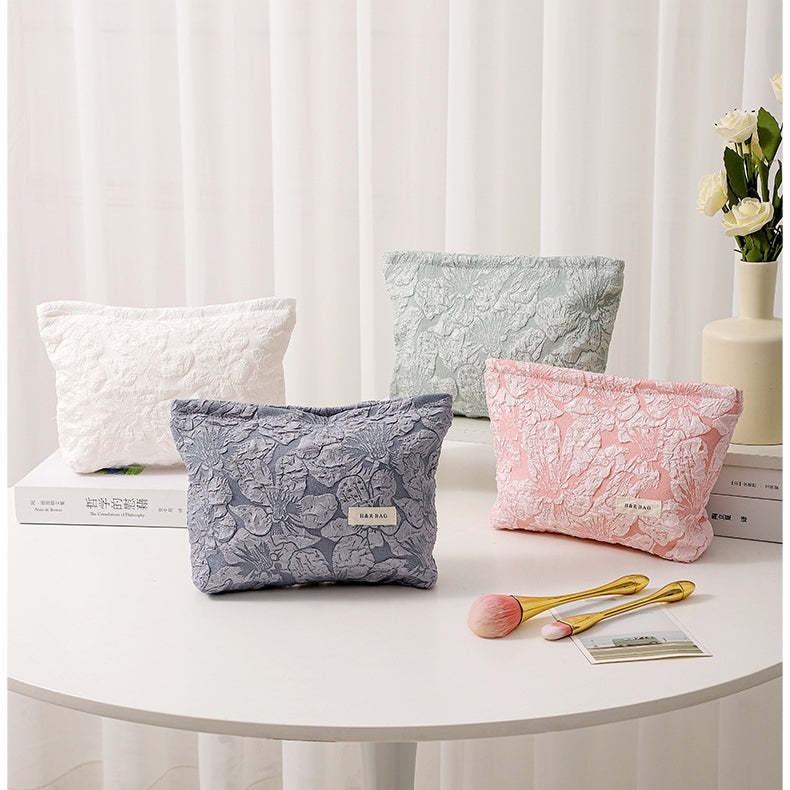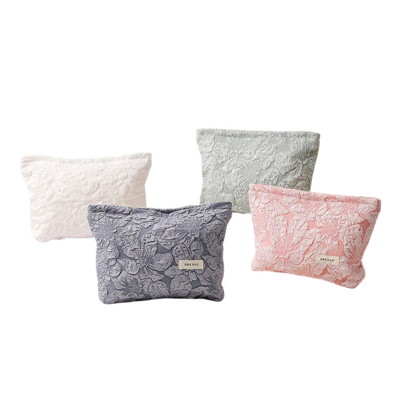 エンボス加工フラワーデザイン大容量キャンバス化粧・トイレタリーバッグ