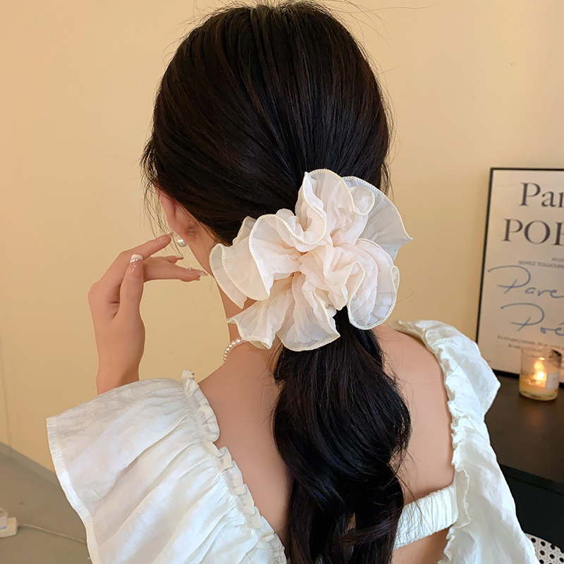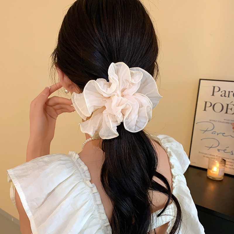 雲のように軽やかで、ふわふわとしたボリューム感が魅力的なオーガンジー素材のビッグシュシュです。ほんのり透けるシアー素材が女性らしさをプラスし、たっぷりとしたサイズ感がトレンディな韓国風スタイルを演出します。