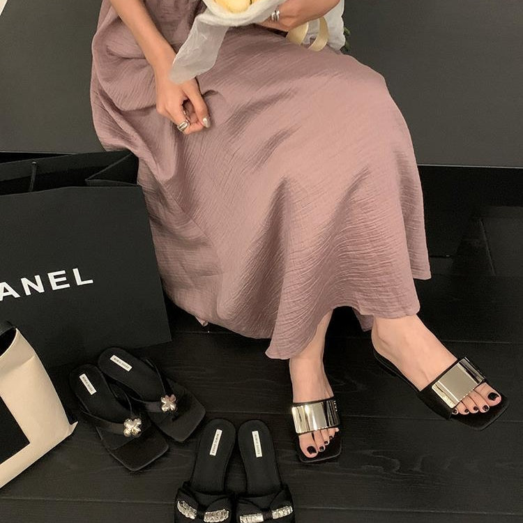 オープントゥ スティレットヒール スリッパサンダル 2025年夏の新作
