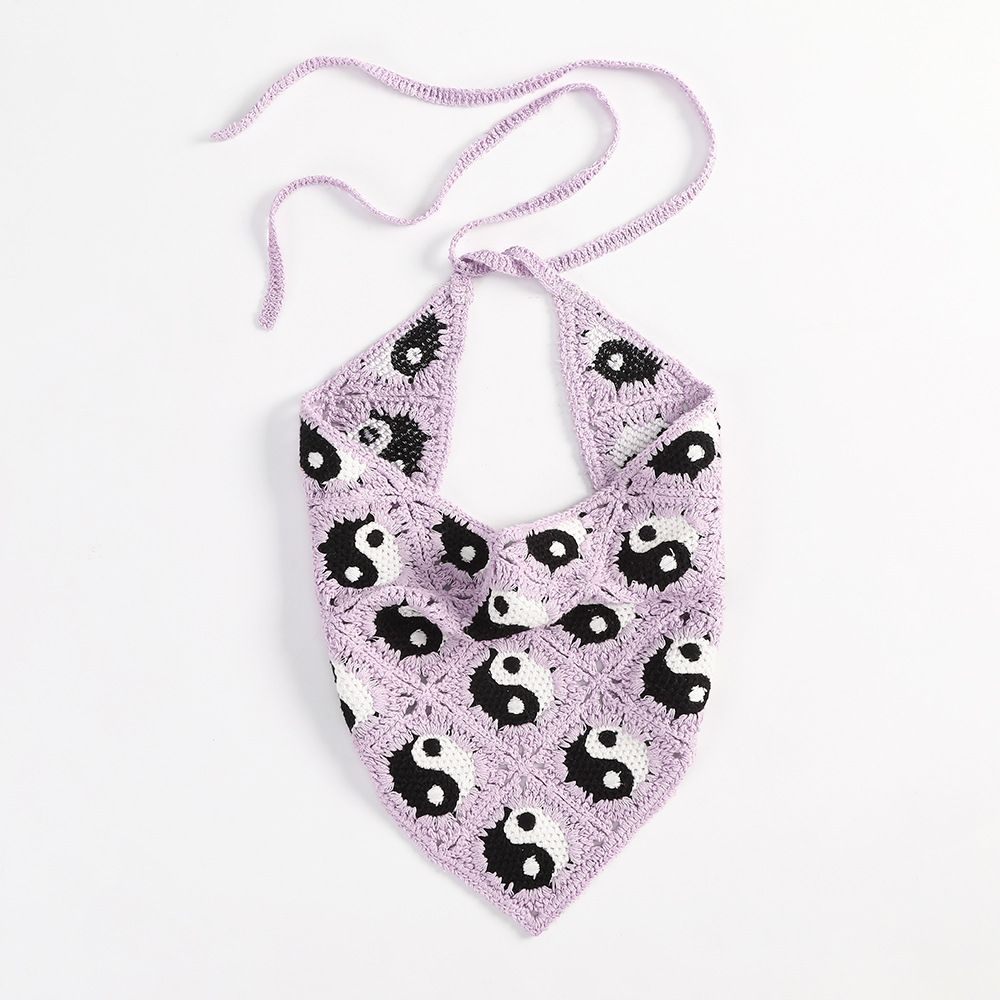 カラフルなフルーツモチーフが目を引く、かぎ針編みの三角バンダナです。 コットン素材で肌触りも良く、ボヘミアンな雰囲気で夏のコーディネートを彩ります。 ヘアバンドとしてはもちろん、首に巻いたり、バッグのアクセントにしたりと、様々な使い方が楽しめます。