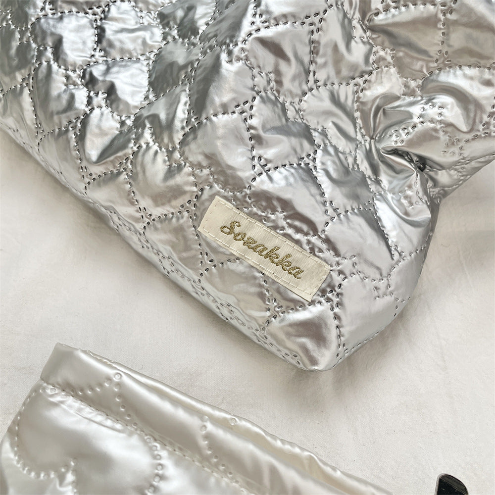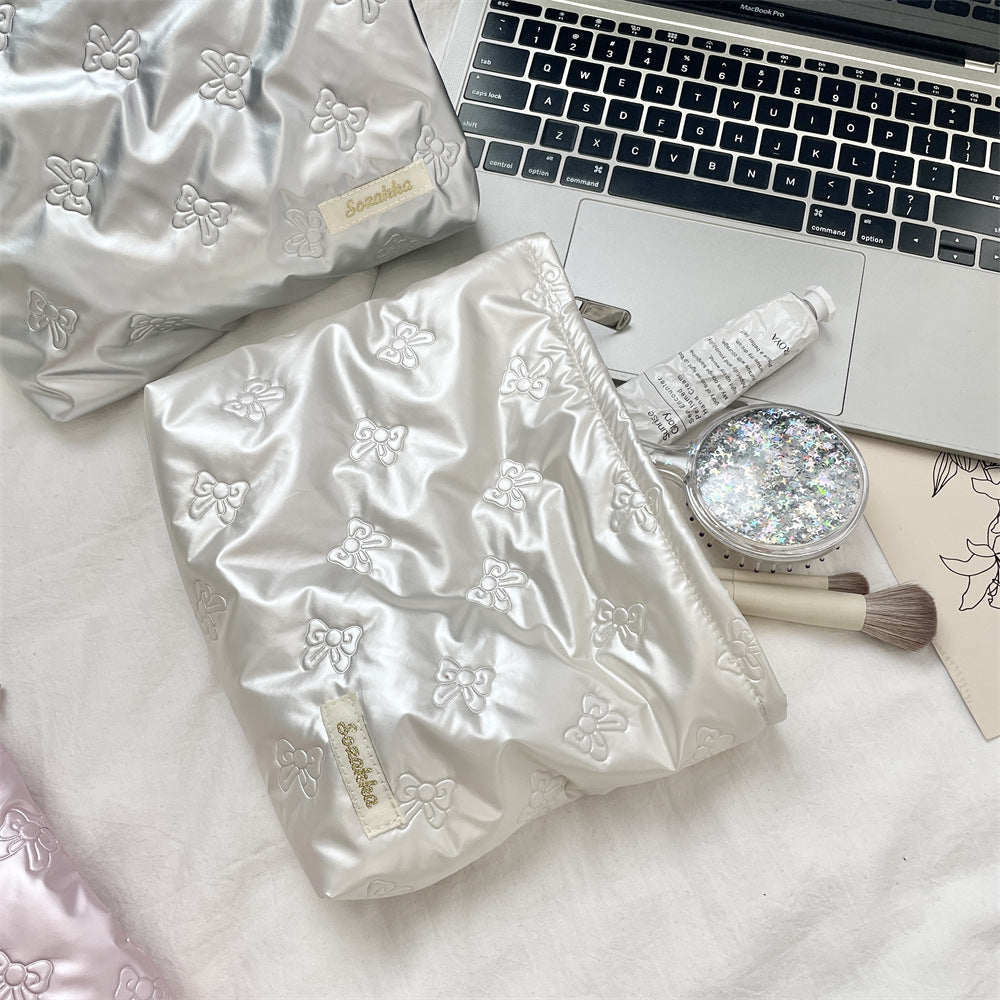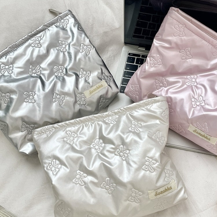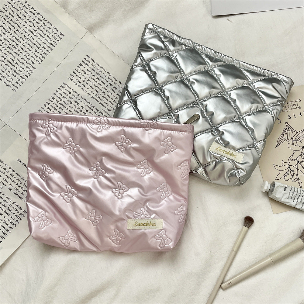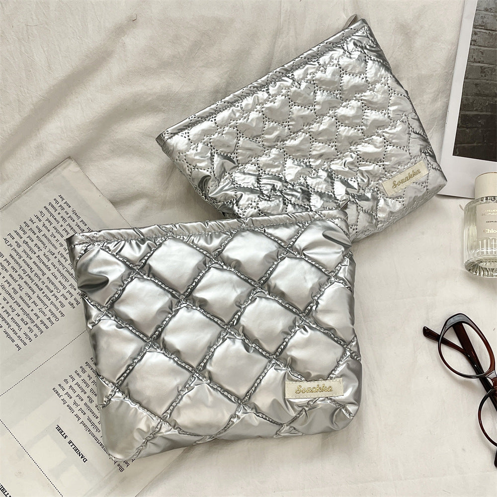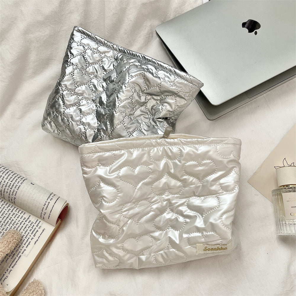 キルティングPUラブクラッチバッグ|多機能化粧品&スキンケア収納ポーチ