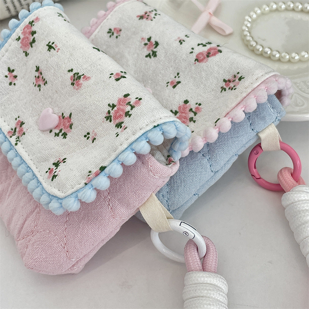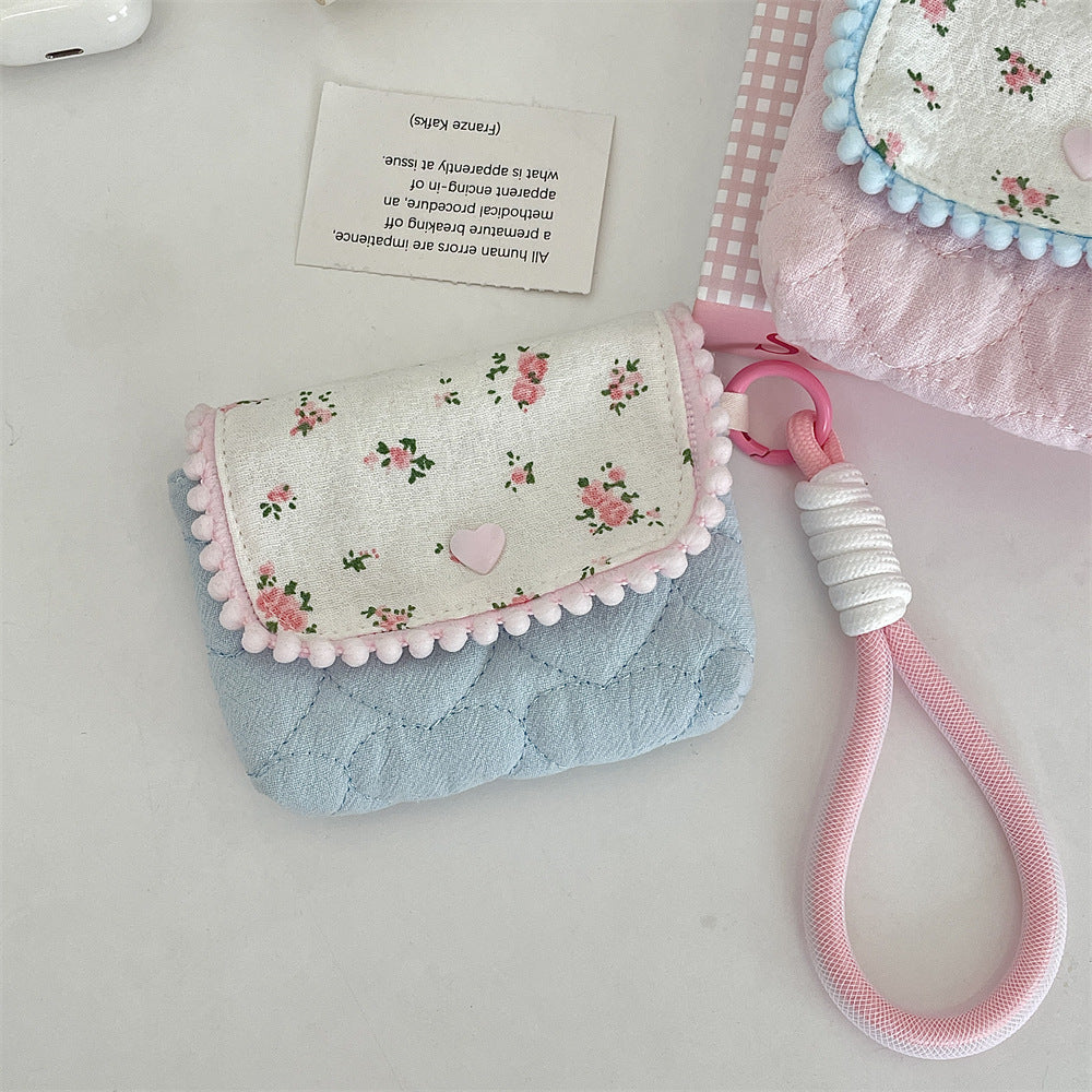 コットンフローラルミニ収納ポーチ|小物を可愛く整理するコンパクトバッグ