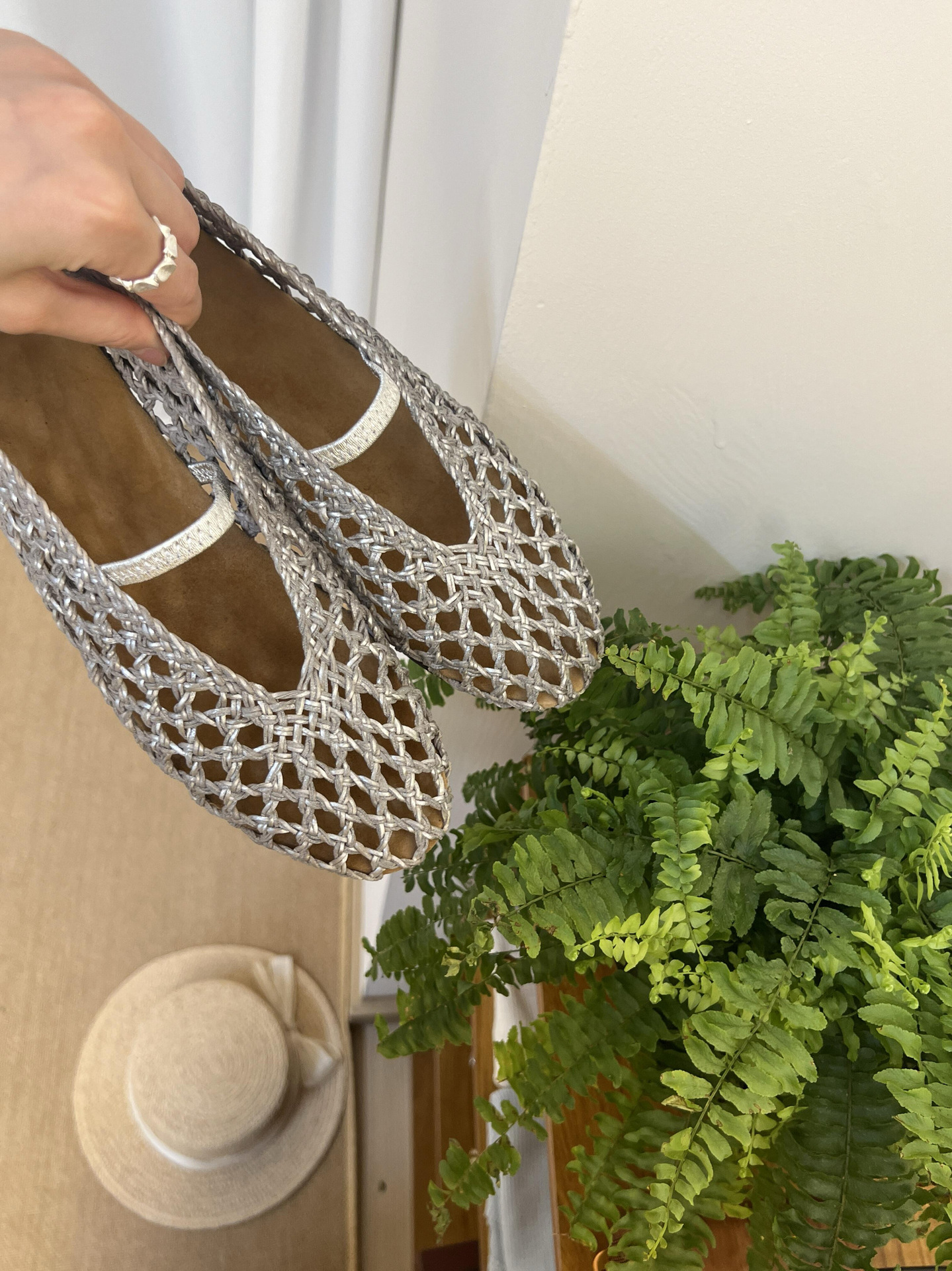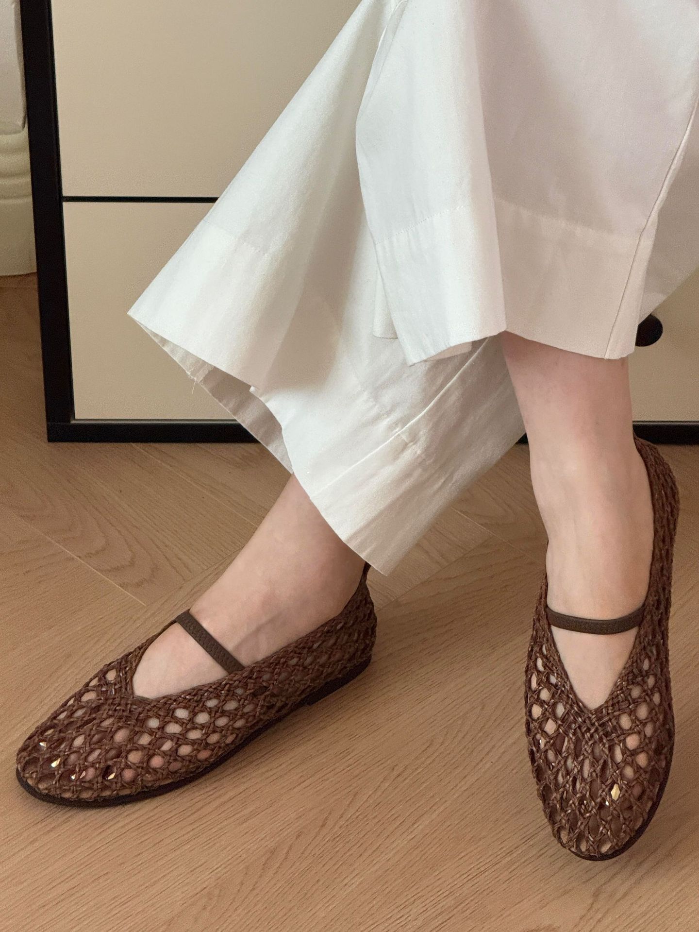 通気性に優れた天然羊革メッシュ素材を使用したメリージェーンフラットシューズ👠
