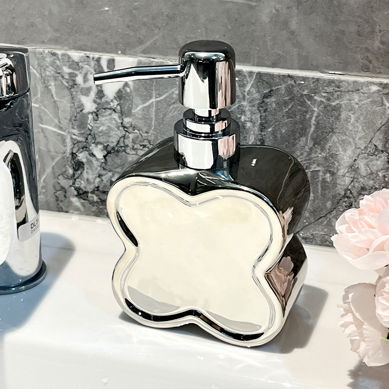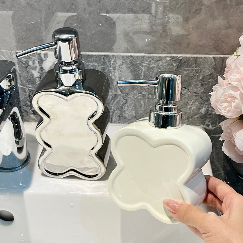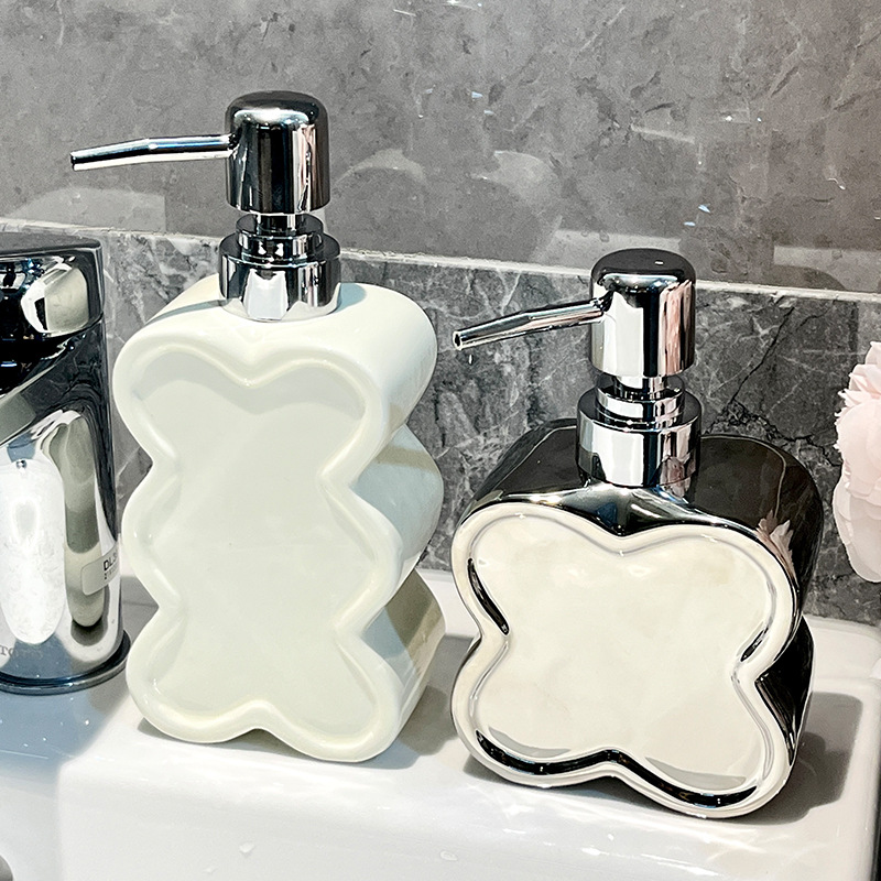 럭셔리 세라믹 프레스 디스펜서. 손가락 소독제와 샤워 젤 샴푸를 다시 채울 수있는 편리한 병입니다. 청결과 고급 스러움을 겸비한 필수 아이템!