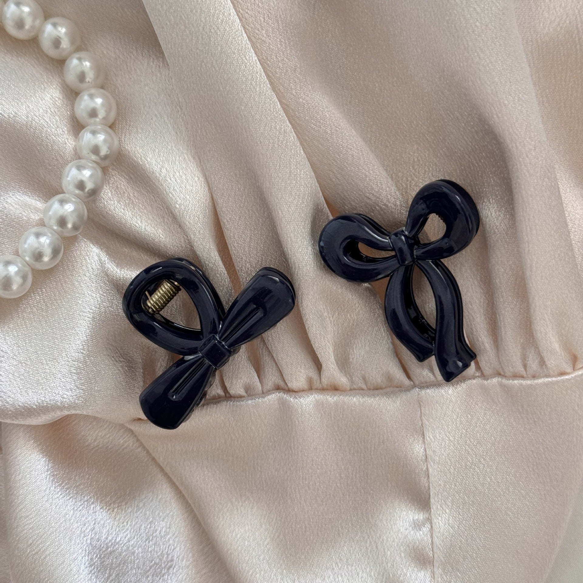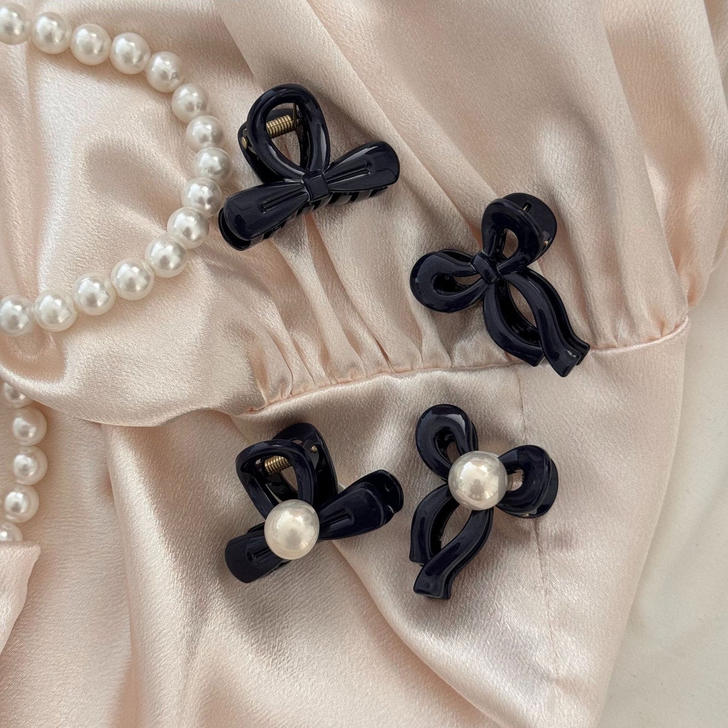 ネイビーレトロパールリボン・プリンセスグラブクリップ