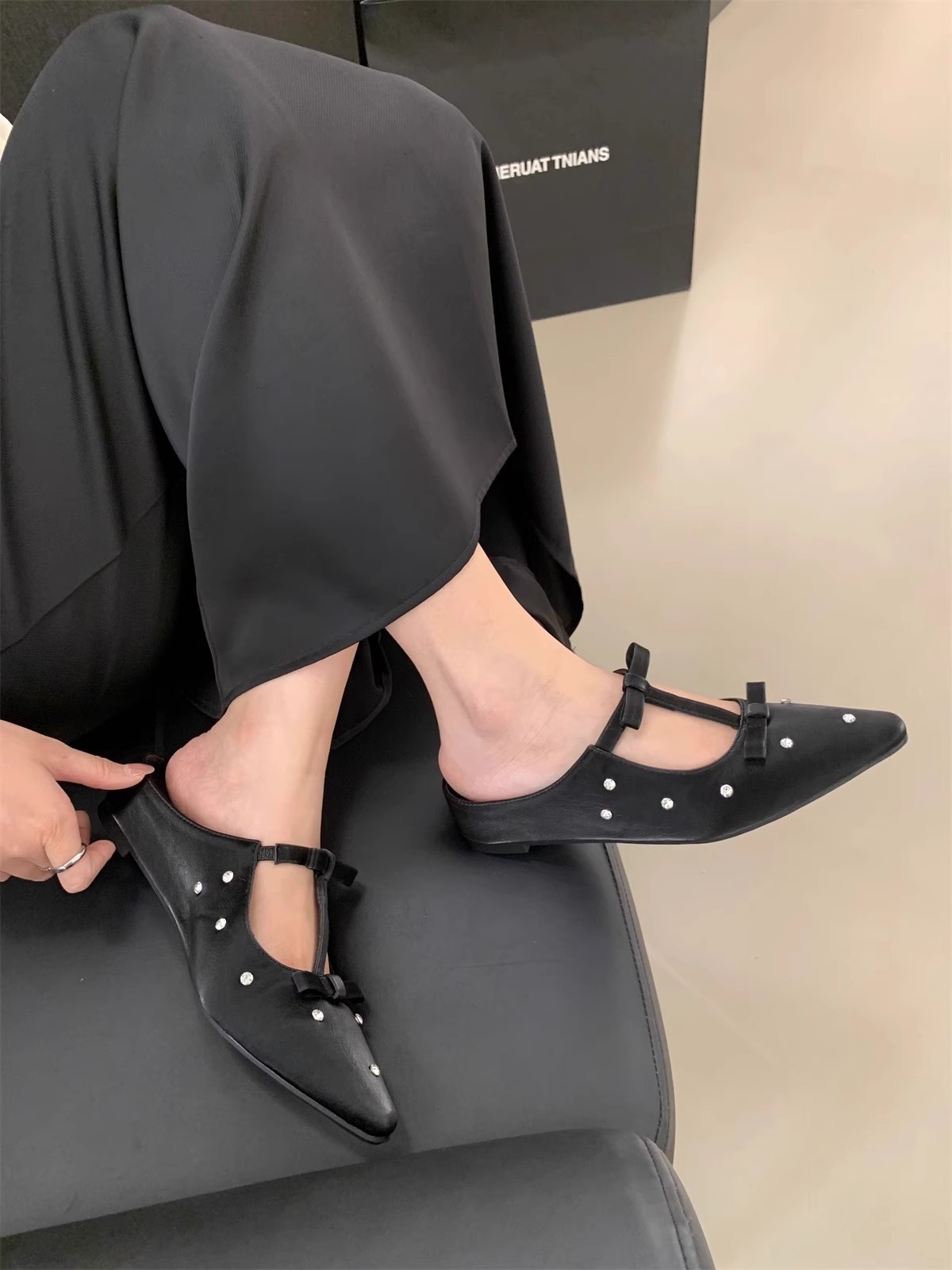 2025年夏の新作、韓国風デザインのレディースフレンチシルバーウェッジヒールポインテッドトゥハーフスリッパ👡