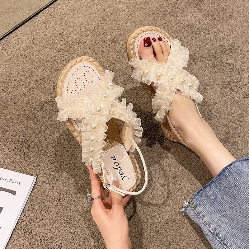 フレンチスタイル プラットフォームサンダル|夏用ローマスリッパ レディース