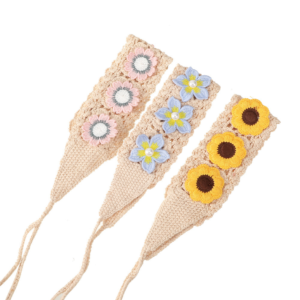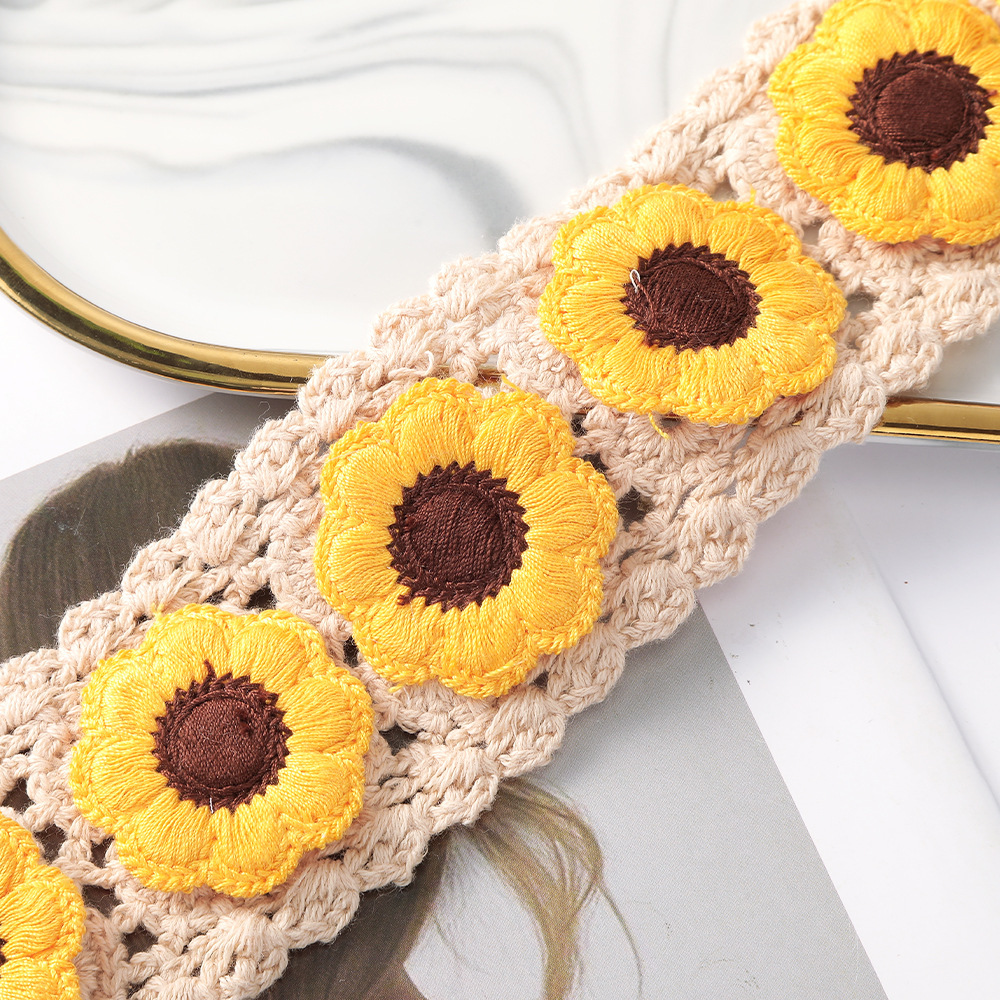 🌻 ボヘミアン 花柄 かぎ針編み 幅広 ヘアバンド - 手編み/エスニック 🌻