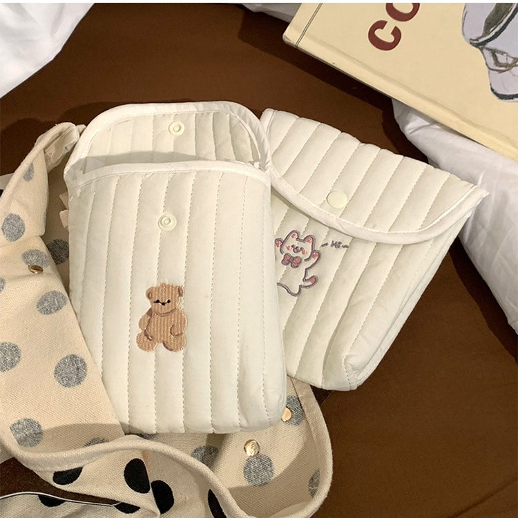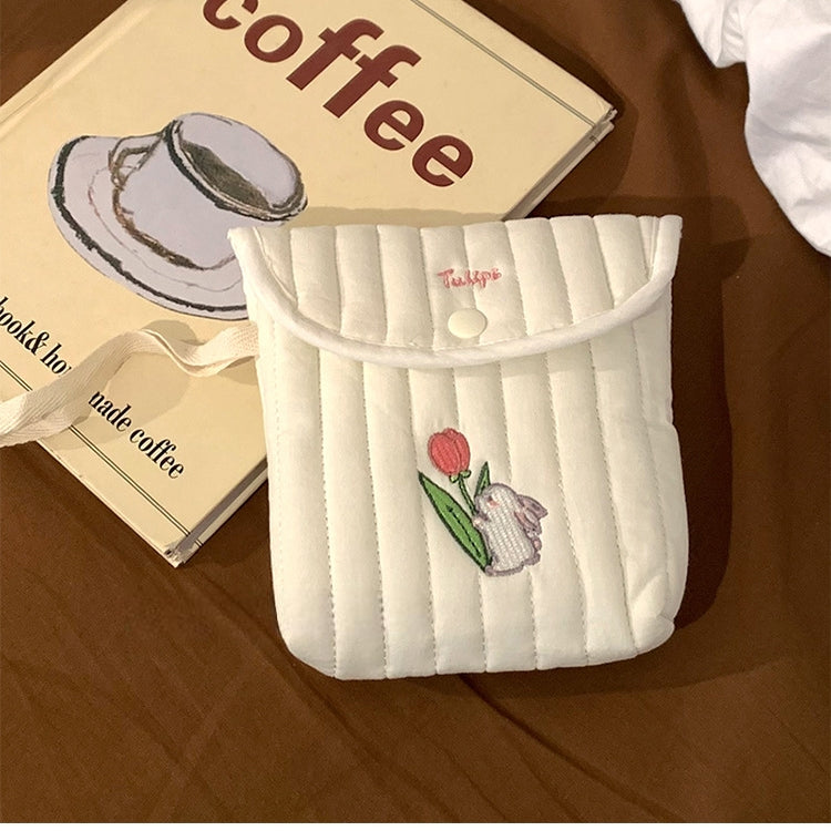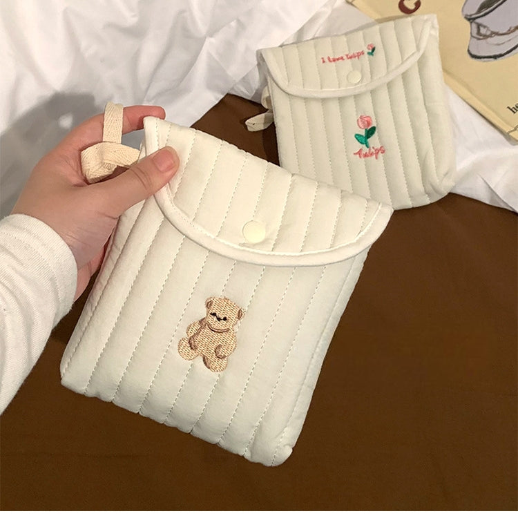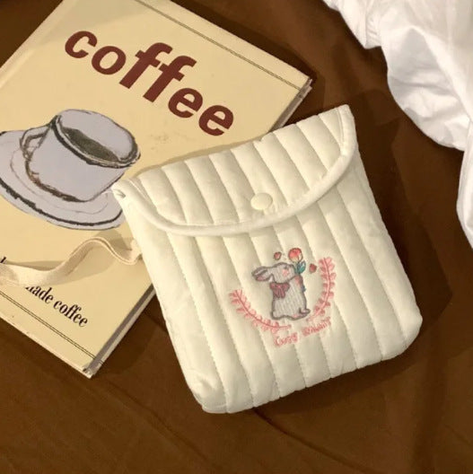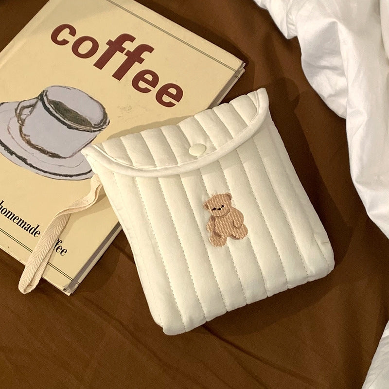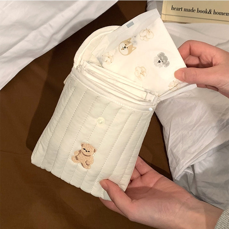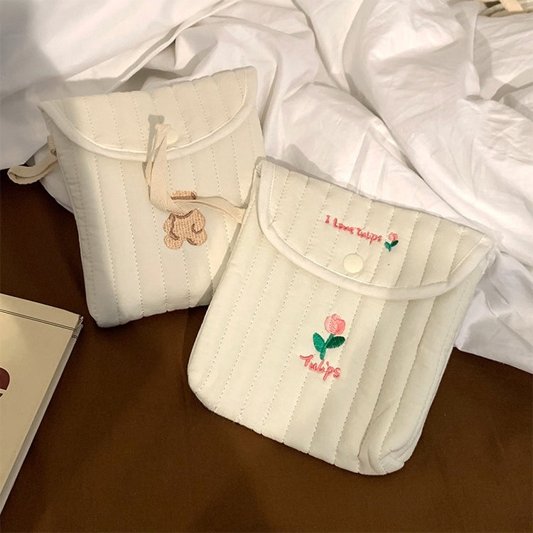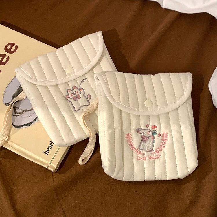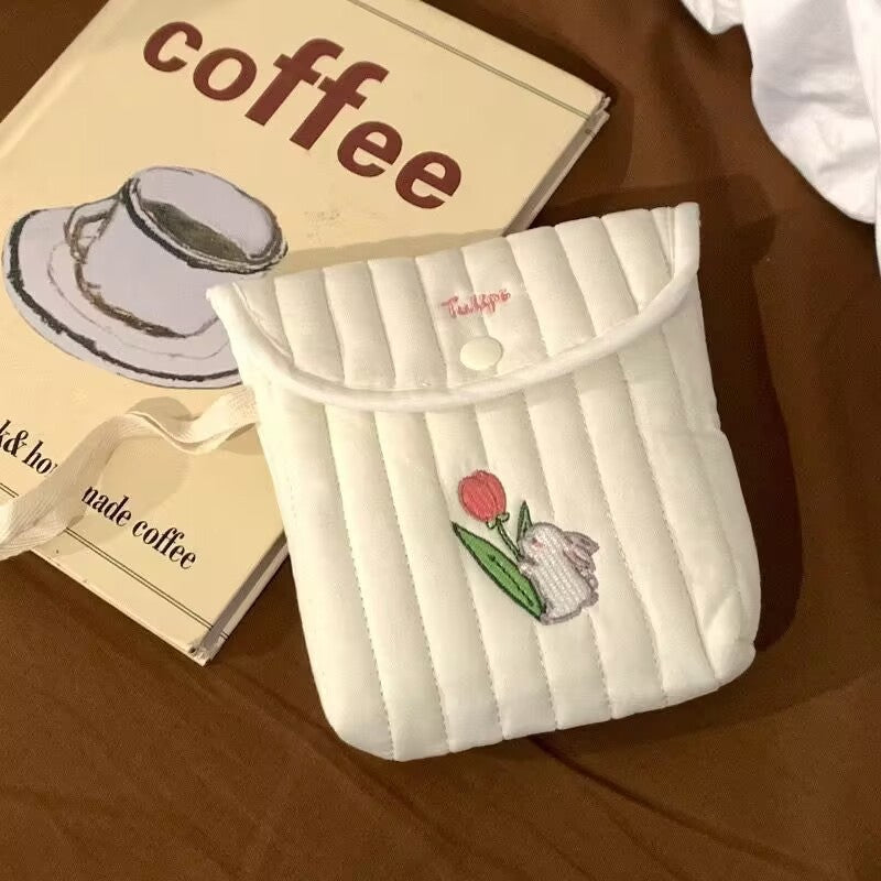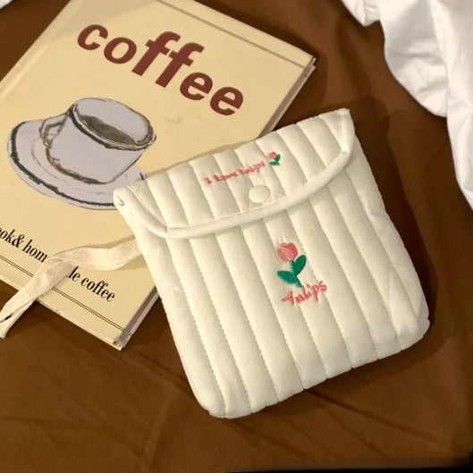 可愛らしいミニスクエアデザインのサニタリーポーチ。